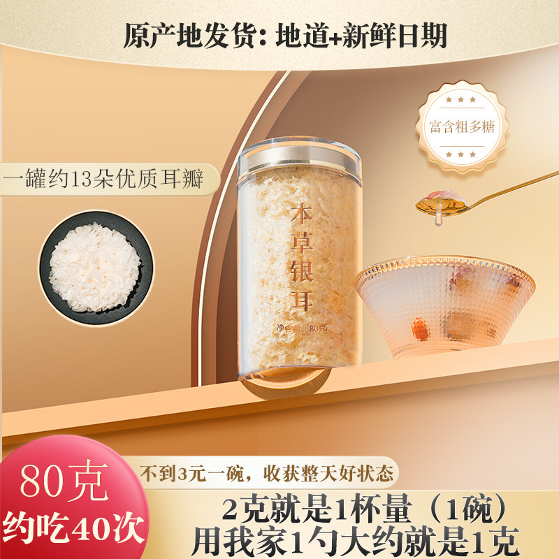 1 pot of 80 gr (no giveaway) silver ear 80g braised braised cup 10 bag chaperone with a silver ear 80g 20 packets of partner plus 18g silver ear 2 jars for a total of 160 gr (
