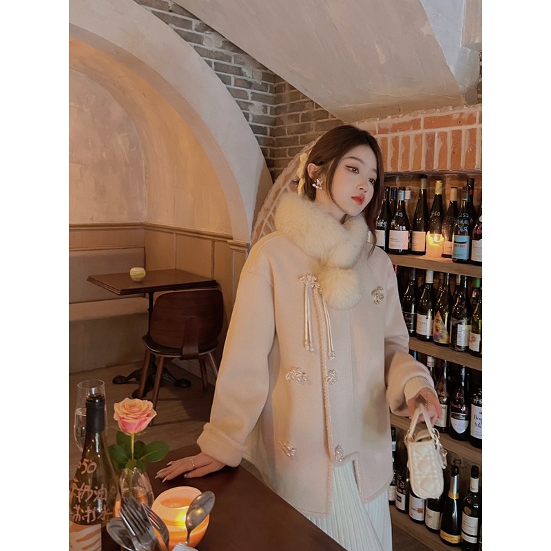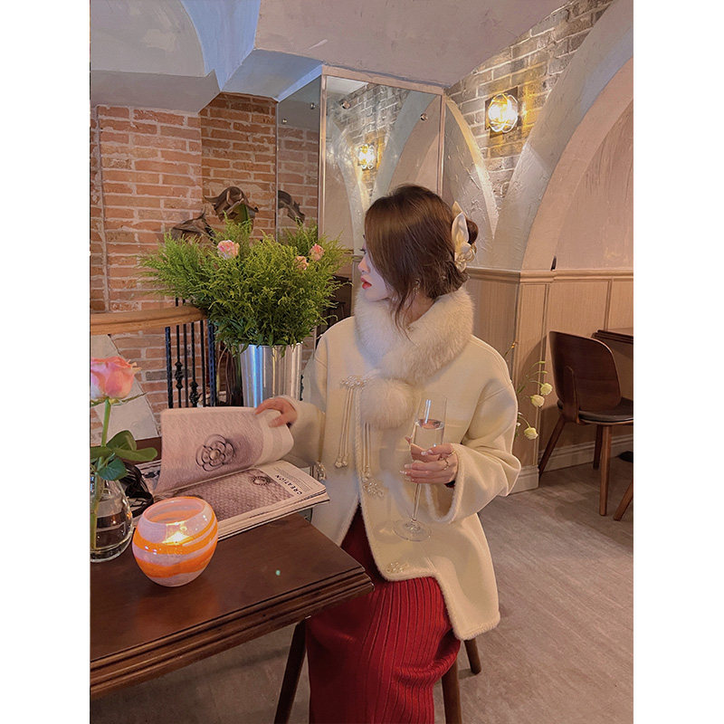 Sticky rice Home New Chinese style Breeze Pink bifacial, What about the late winter in women's white short fur coat-Taobao