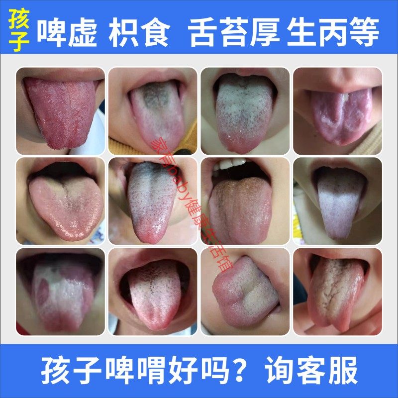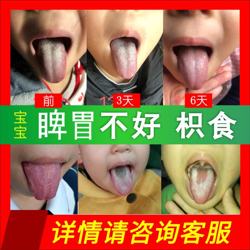 By the body of children's food, the temper and stomach to the children's spleen and plaster diet, heat on the tongue and tongue thick white yellow black