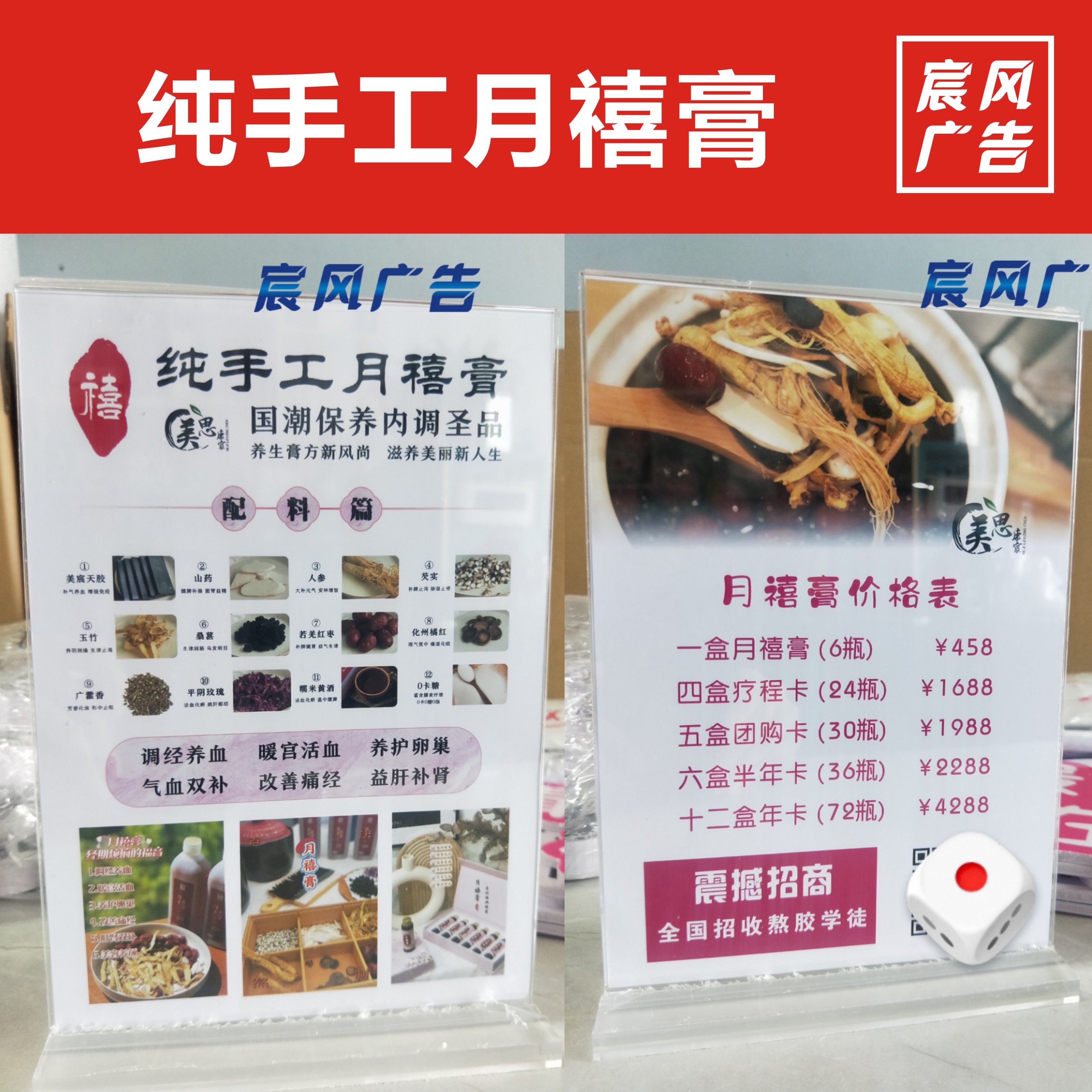 Acrylic table card moon jubilee cream donkey-hide gelatin cake dehumidification tea ground push advertisement A5 table setting Meisi Kangchen content can be customized