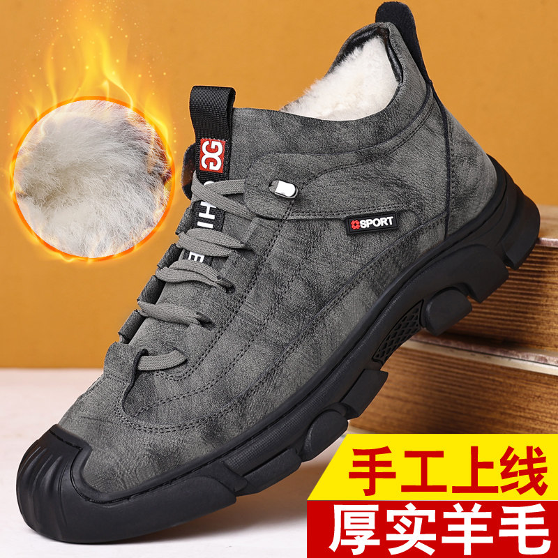 Woodpecker cotton shoes men's winter warm and thickened wool outdoor genuine leather high help anti-chilling Northeast snow boots anti-slip-Taobao