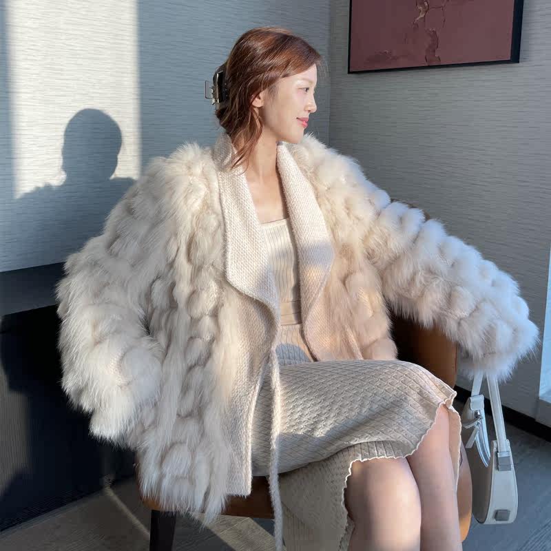 Design sense imported fox fur fur coat women's 2022 winter new young fashion knitted cardigan