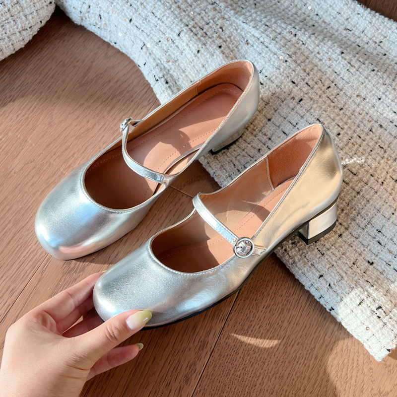 Mary Jane shoes 2022 new autumn retro French small leather shoes thick heel round toe with silver women's single shoes