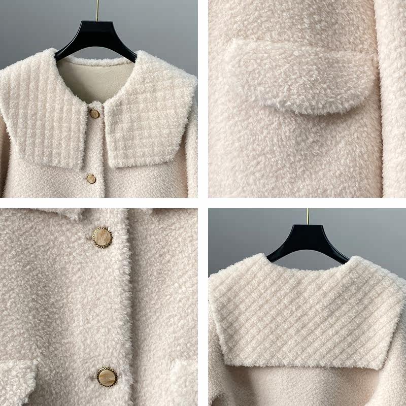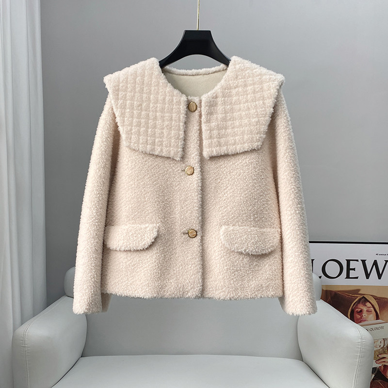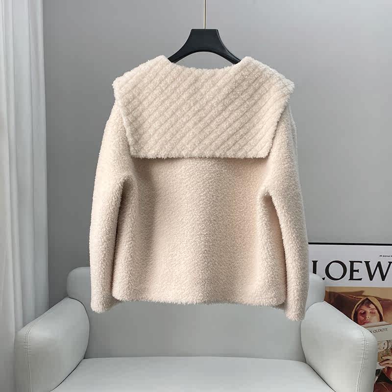 2022 Winter new Navy Collar Fur Coats Women's Grain Suede Fur Integrated Short sheep-cut velvet big coat woman