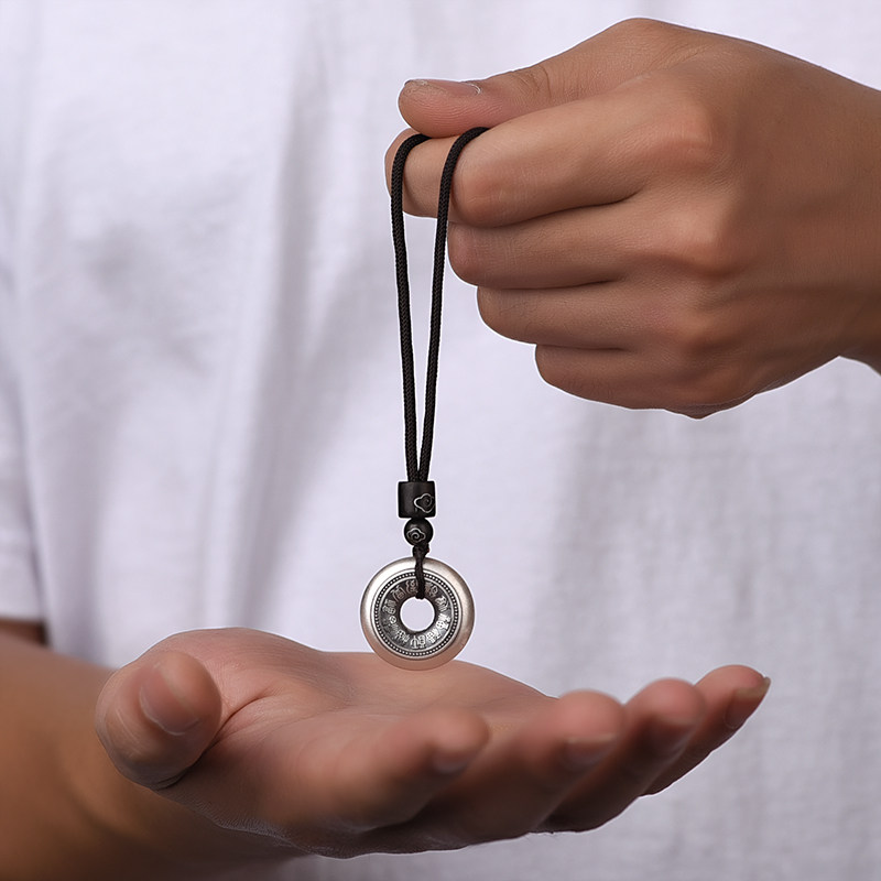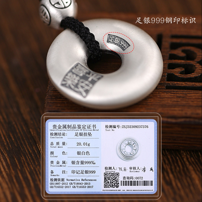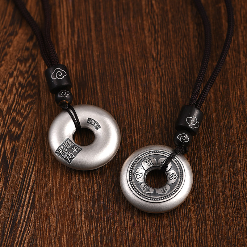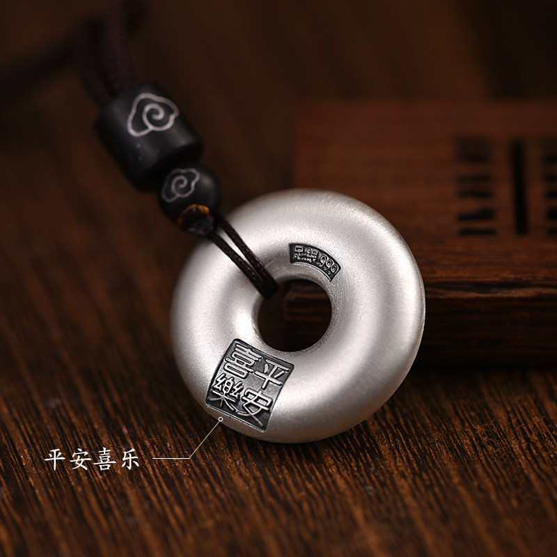 Rotai's old silversmith 999 pure silver Ping An buckle pendant male and female letterhead Forwords for the life of Xiao Long Ben's life necklace-Taobao