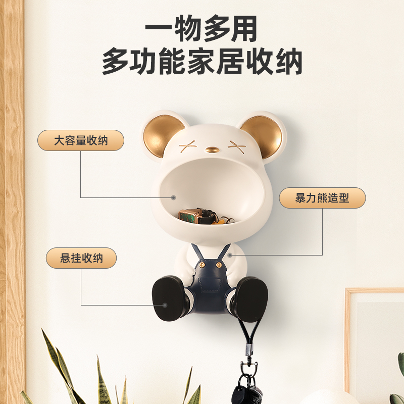 Entrance gate Genguan Key Containing Hanging Rack Creativity Violent Bear Hook-shelf Living room Children's room Wall Decoration-Taobao