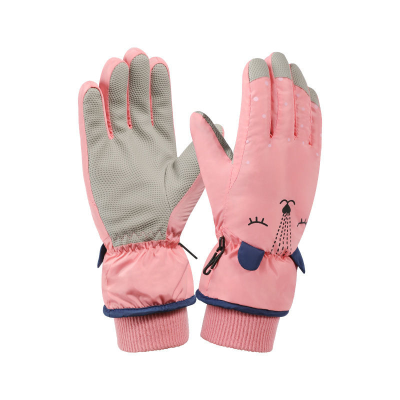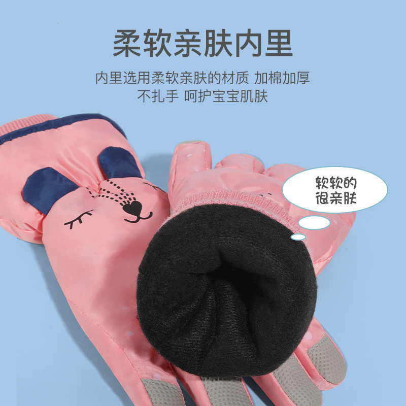 New winter children's ski gloves outdoor windproof plus velvet thickened warm cartoon boys and girls gloves