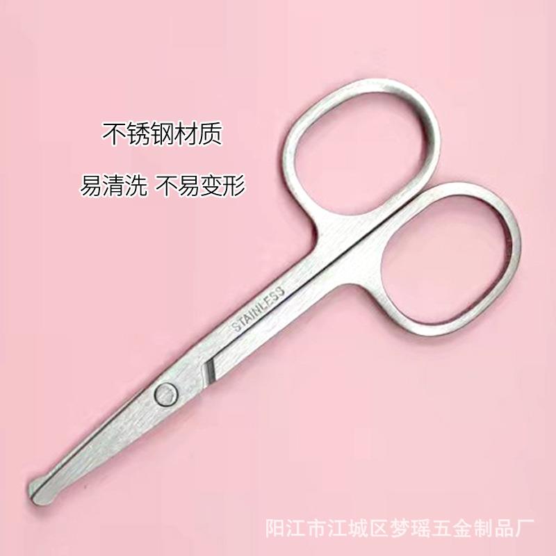 Individually packaged stainless steel eyebrow scissors beauty makeup tools round head pointed nose hair trimming small scissors factory spot