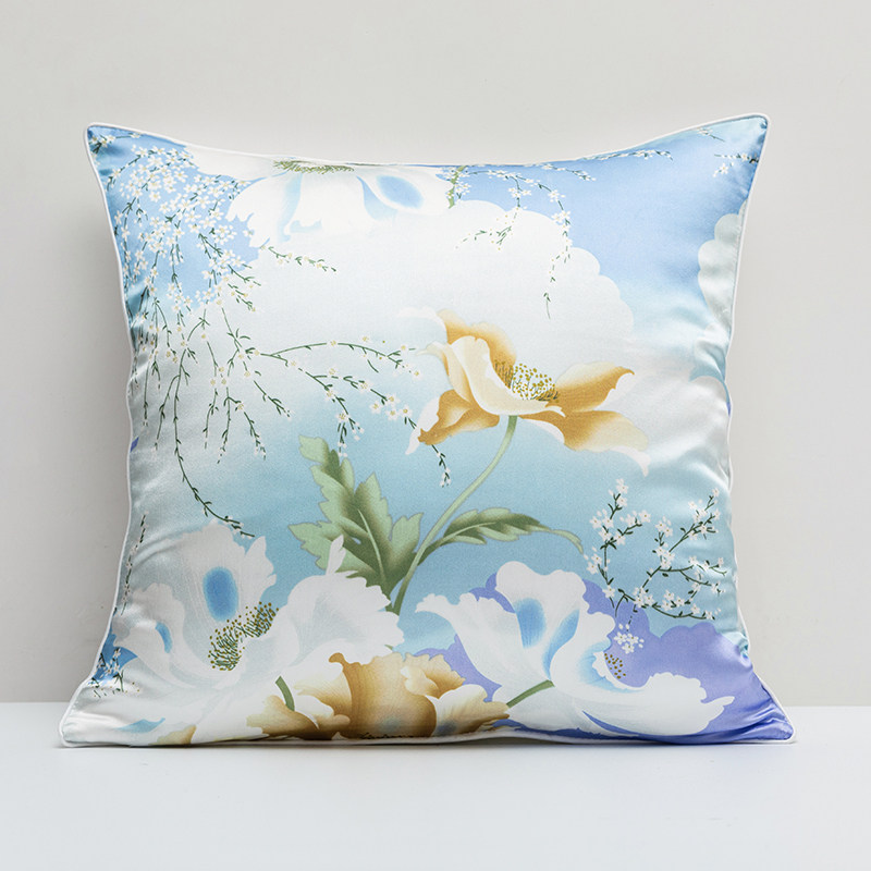 Poetry Benie Single Sided Genuine Silk Holding Pillow Cover Sofa Office Waist Pillow Back Cushion Afternoon Nap Leaning Pillow Cover Bed Cushions with Core-Taobao