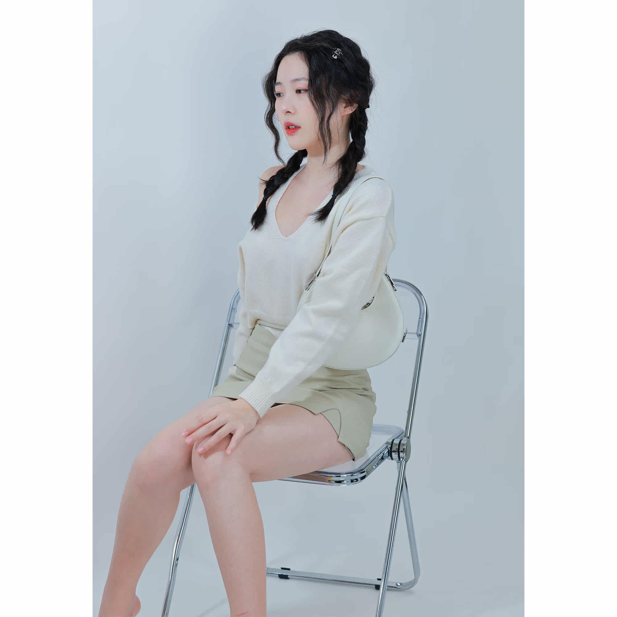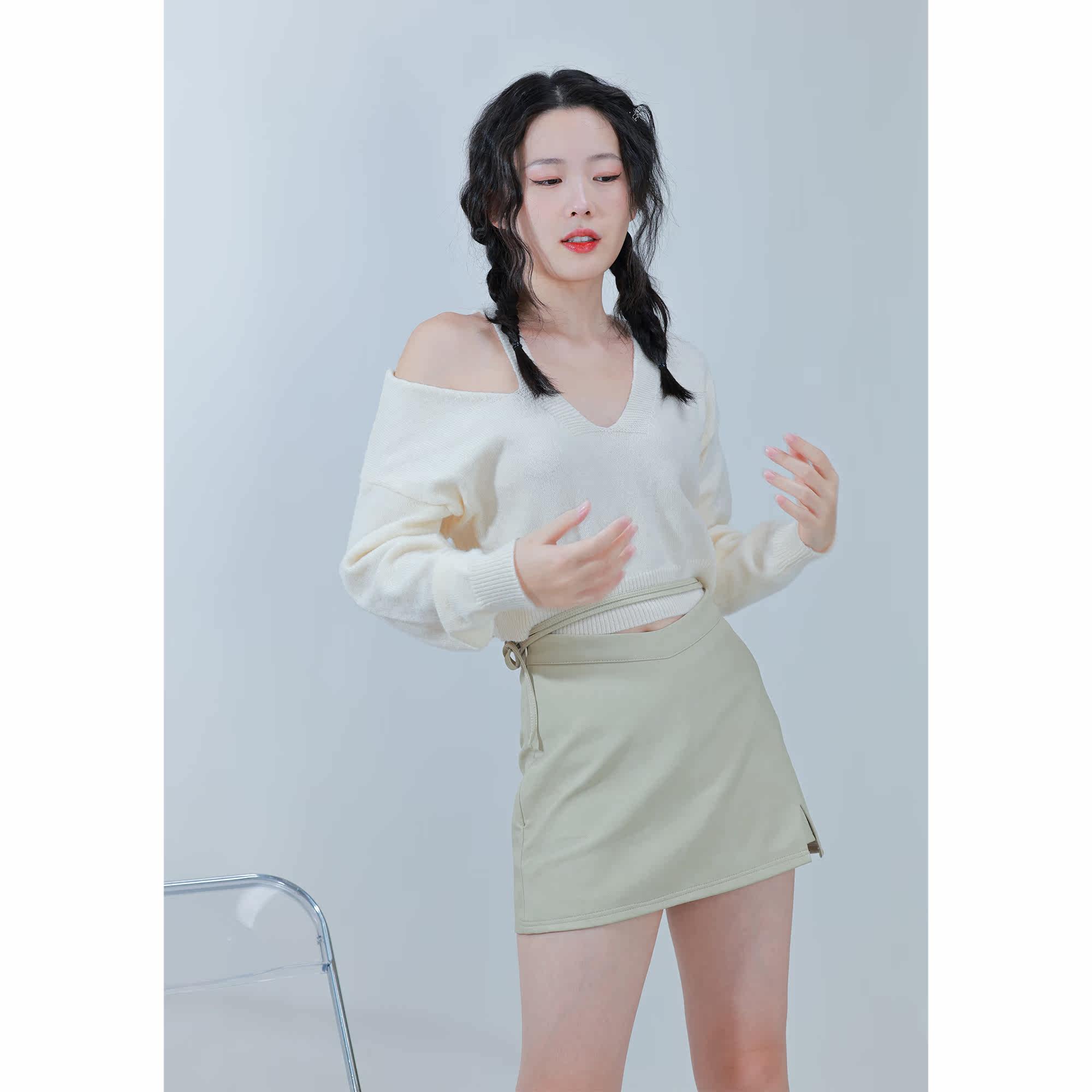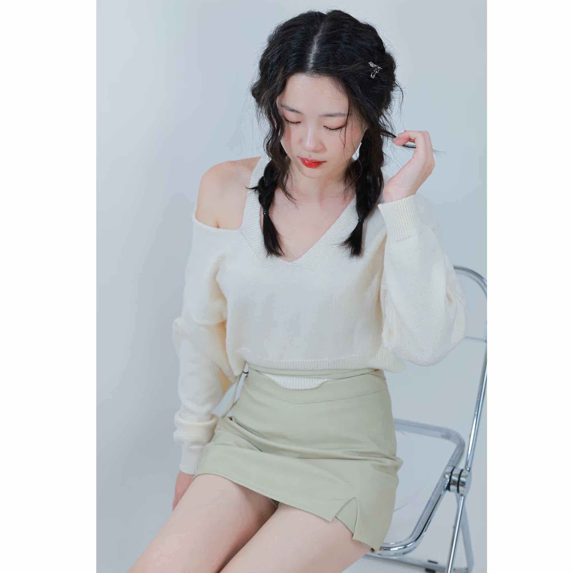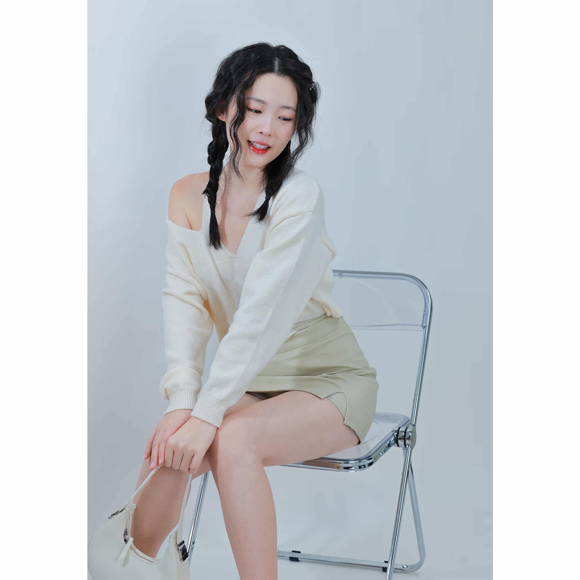 Sister Hu lantern sleeve off-the-shoulder V-neck sweater 2022 autumn and winter new design temperament sweater top women