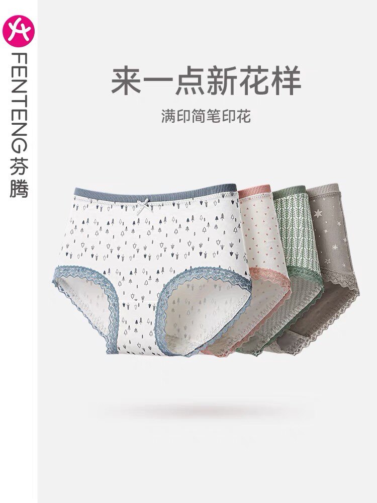 Fentenpants Women's Pure Cotton Middle Waist Antibacterial Breathable Lady Triangle Pants Sexy Sweet Girl Full Cotton Crotch Shorts Head-Taobao