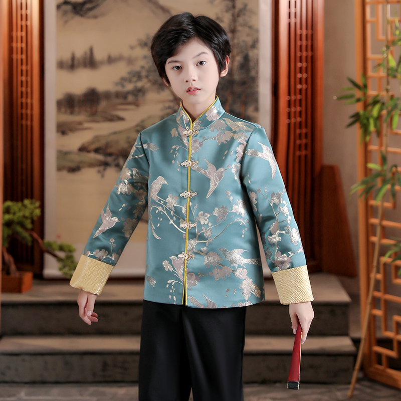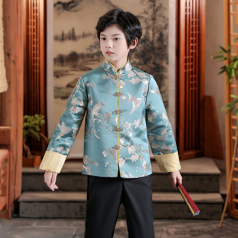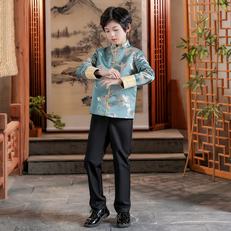 Boy's Tang Costume Children China Wind Play Out 2024 Chunqiu's new boy Zhongshan dress Chinese style gown performance suit-Taobao