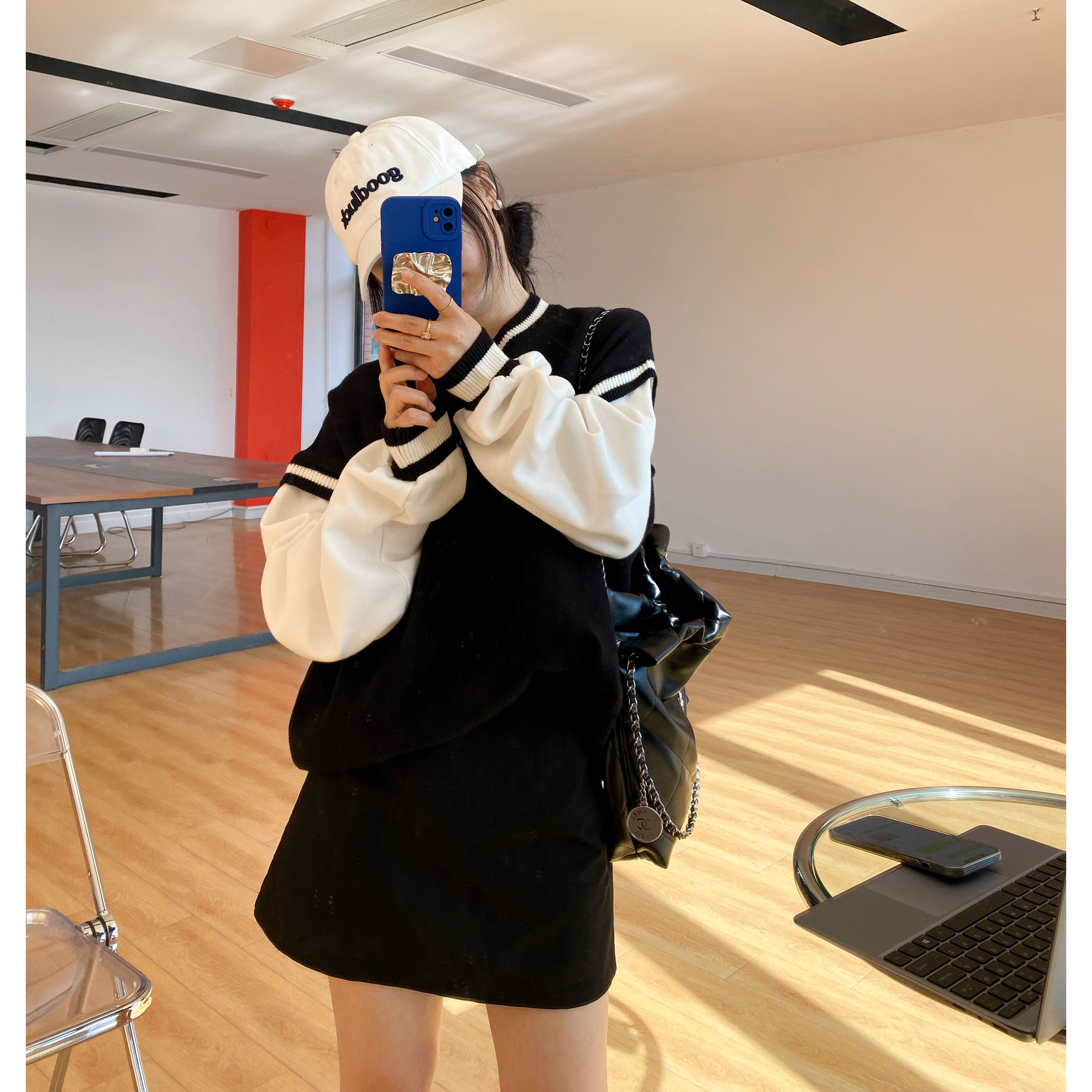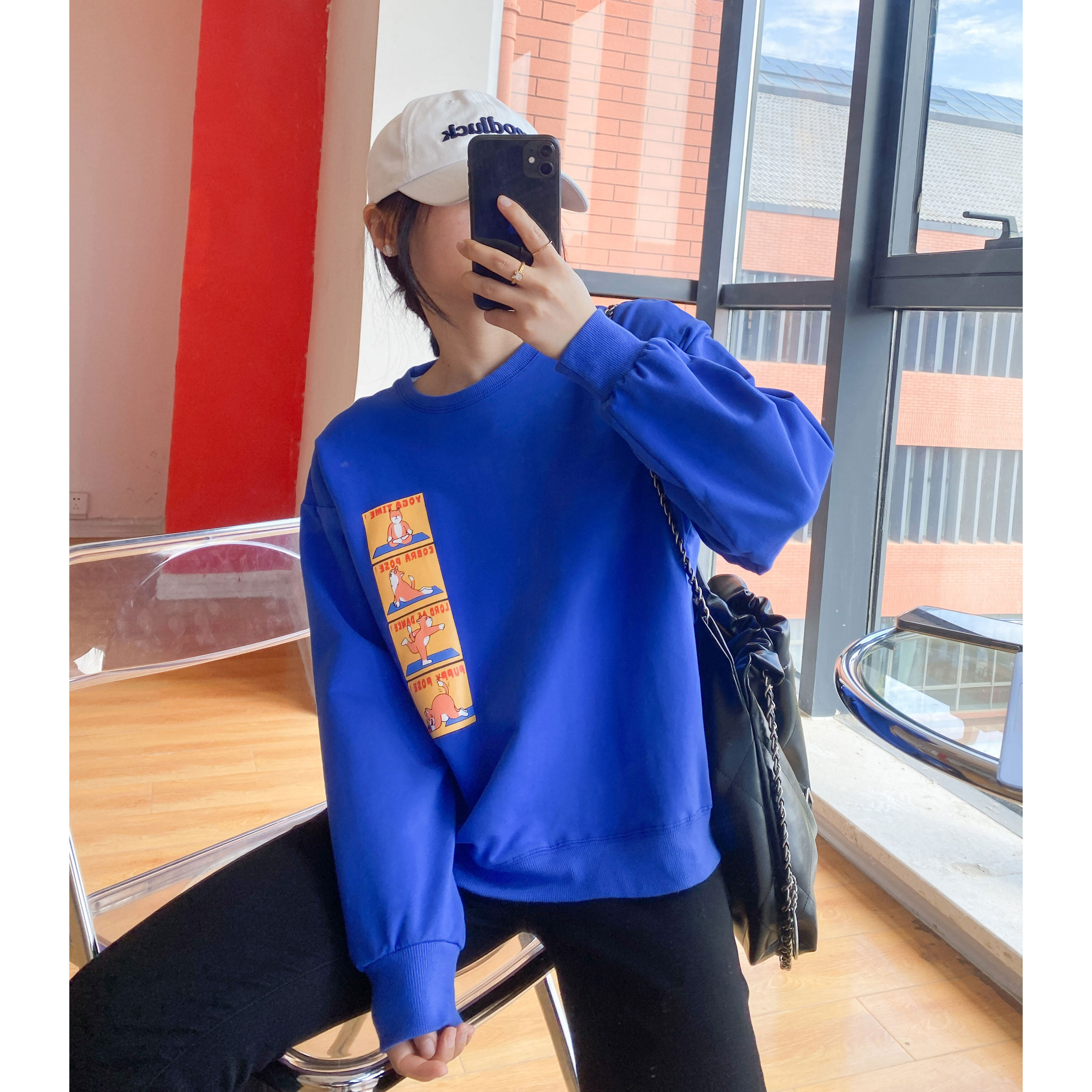 Contrasting color sweater gray letter sweater lamb wool stand collar sweater lamb wool hooded sweater blue comic sweater round neck pink sweater round neck blue sweater