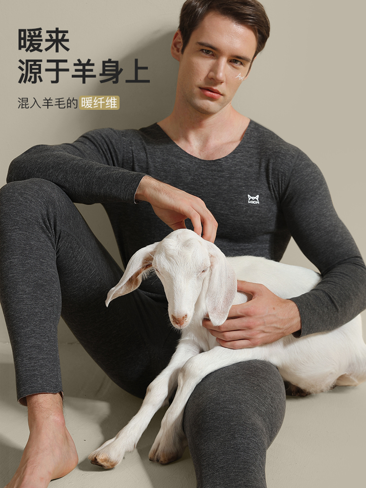 Cat person fever Men's warm lingerie Garnapped with no-mark Fever Autumn Pants Thin and Autumn Pants Suit Men's Autumn Winter-Taobao