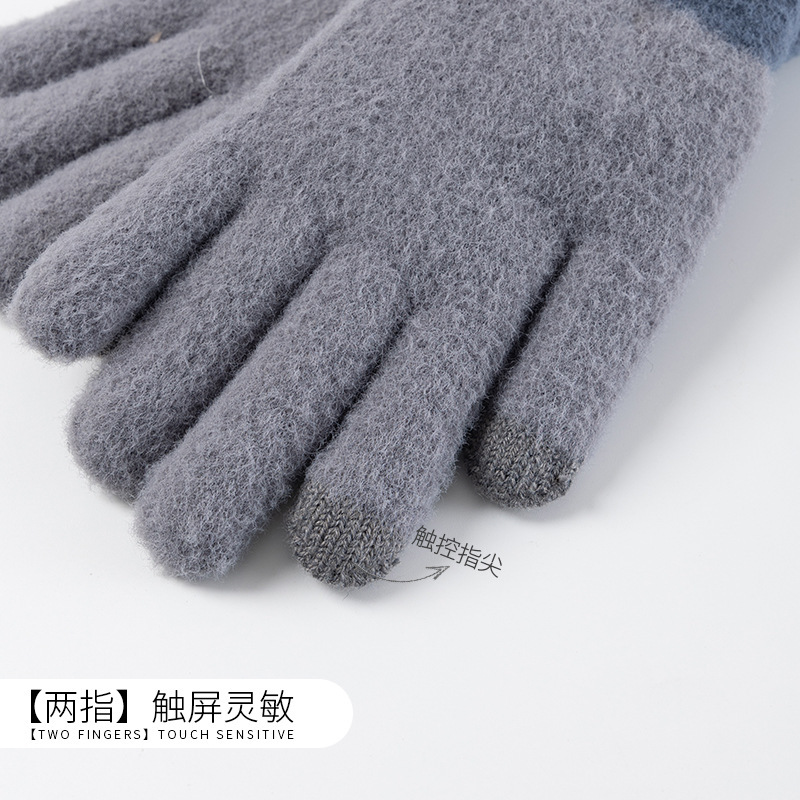 Men's Gloves Winter Warm Knit Printed Double Layer Fleece Touch Screen Finger Gloves