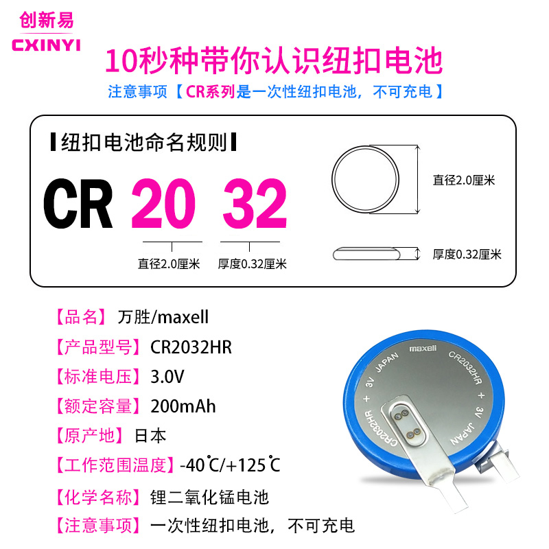 The Tyre Pressure Monitor CR2032HR button battery 3v high temperature replaces CR2032B and cr2032w