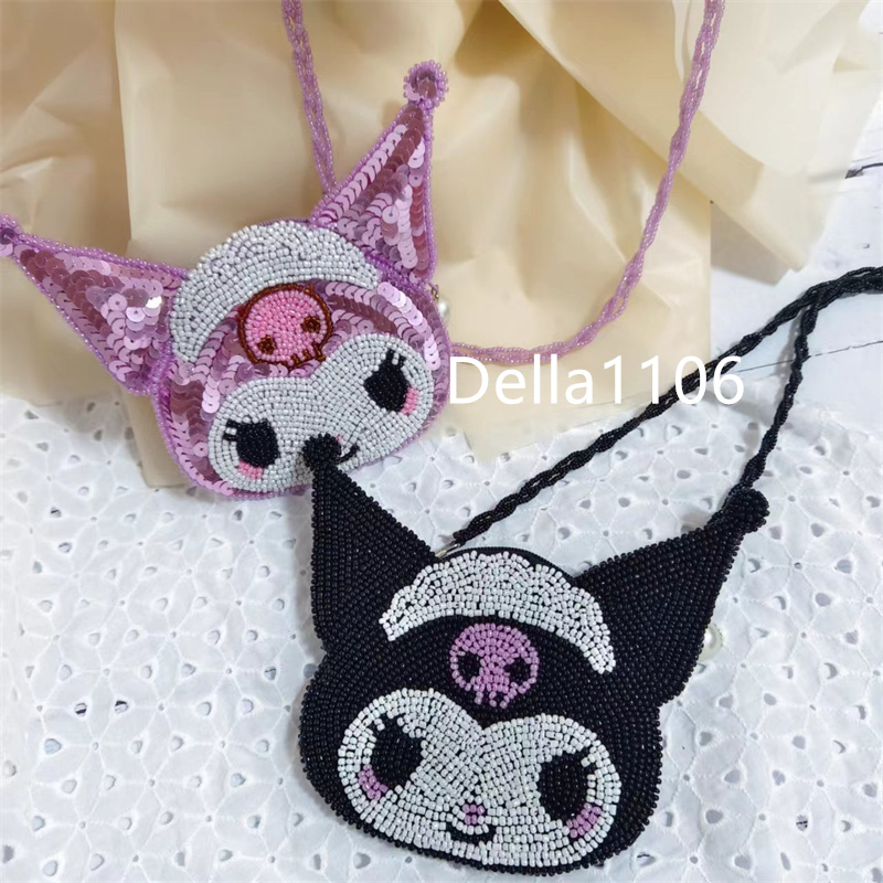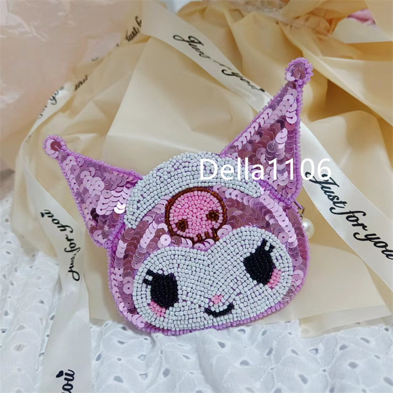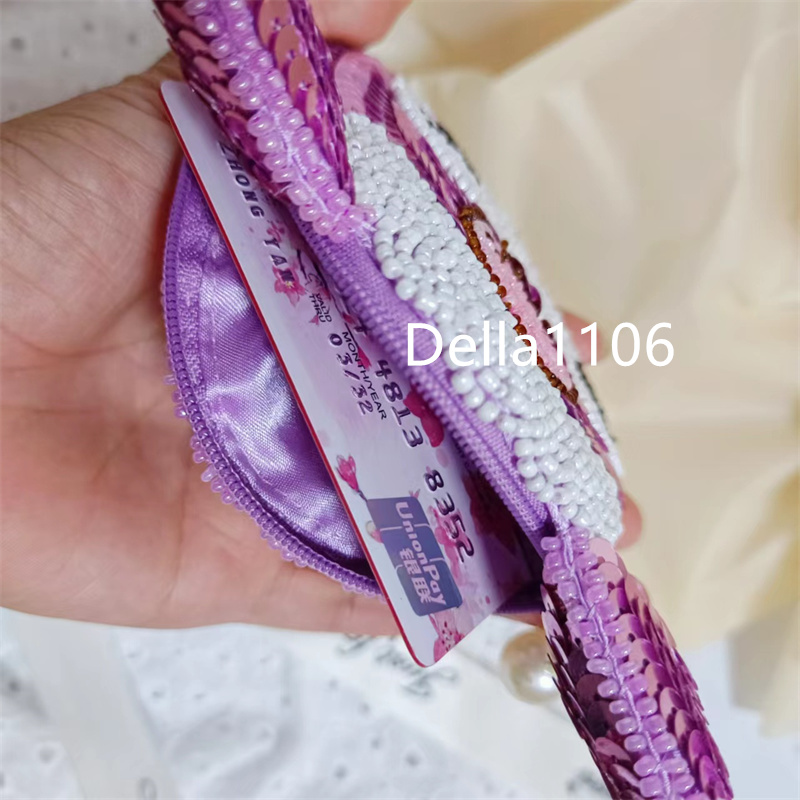 Purple Bright Slice Zero Wallet Without Chain Black Strings Beads Zero Wallet Without Chain Purple Sequins Zero Wallet With Chain Black Strings Beads Zero Wallet With Chain