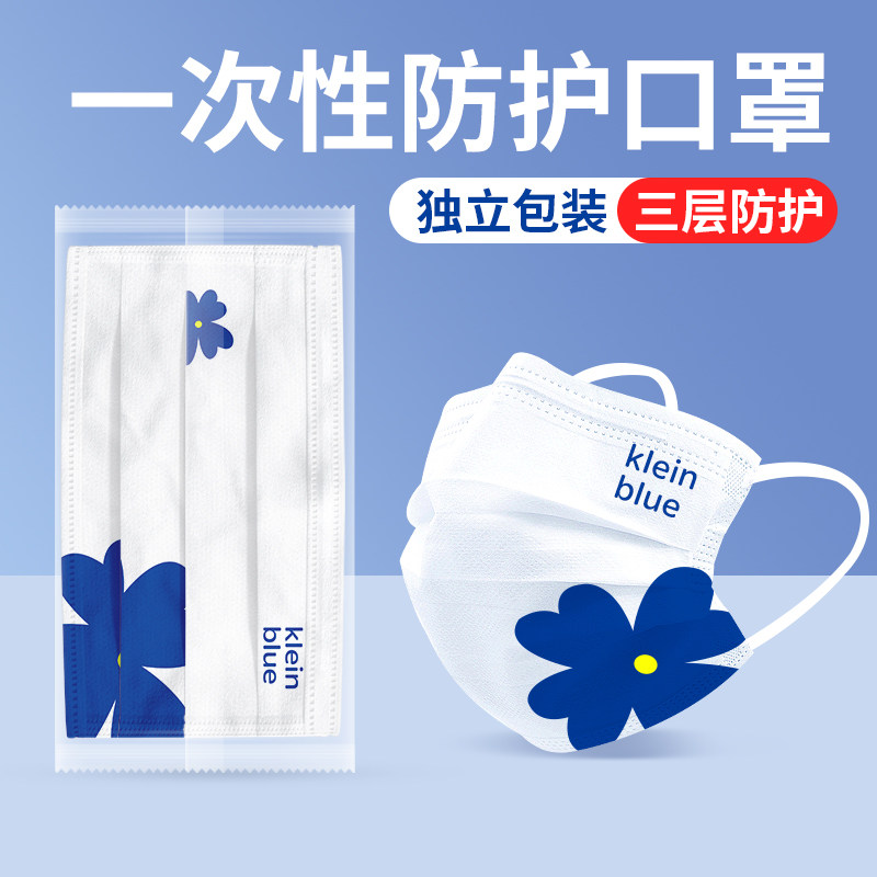 2022 Klein blue new slimming mask female high value disposable three-layer color cute mask for boys and girls