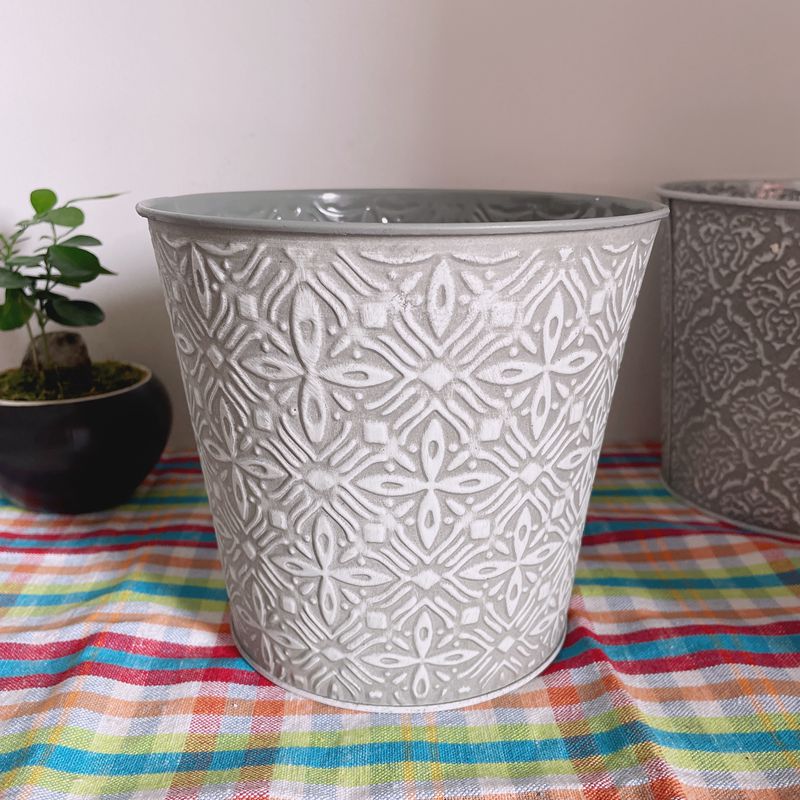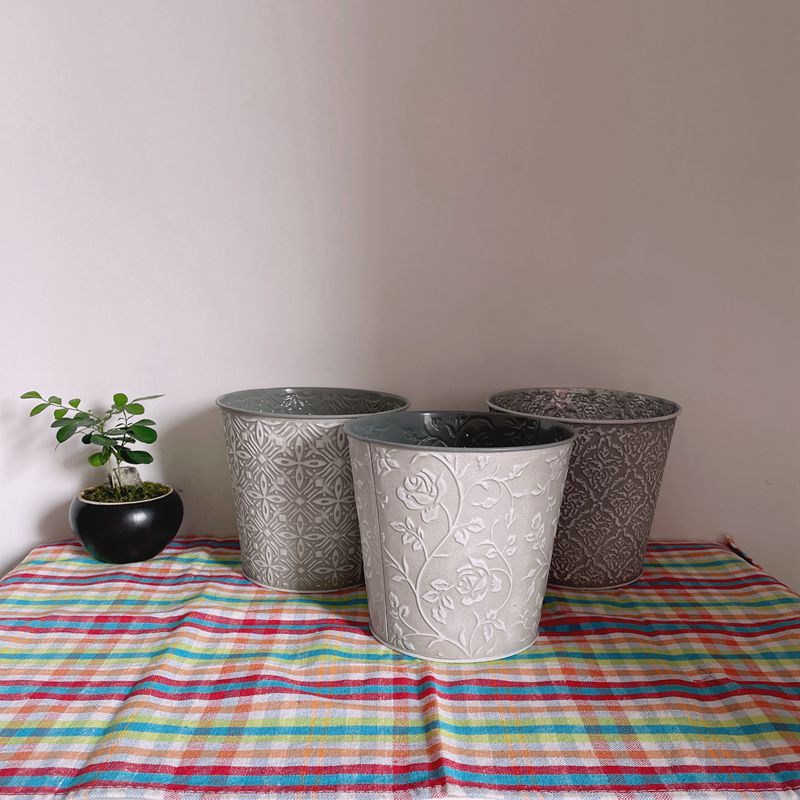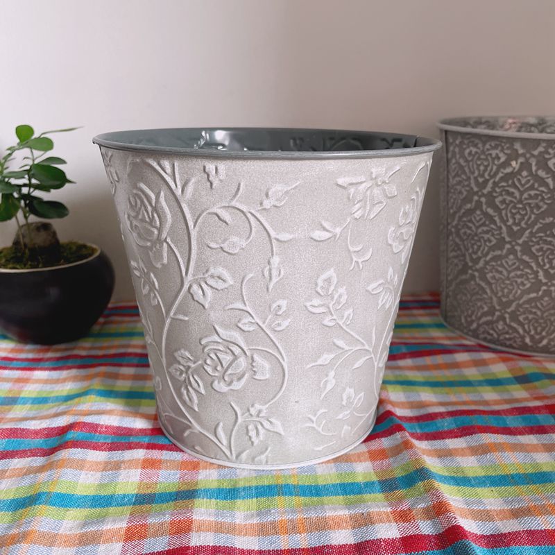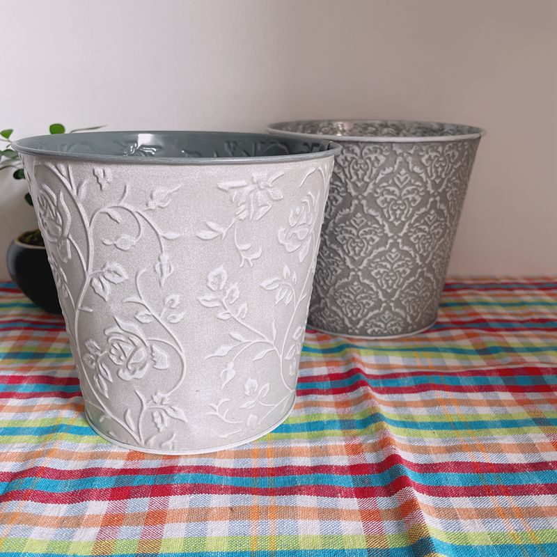 Nordic minimalist series reliefs with floral pattern Tin barrel iron art green plant floral metal flower pots gardening-Taobao