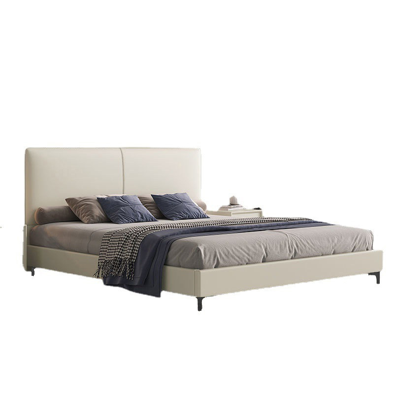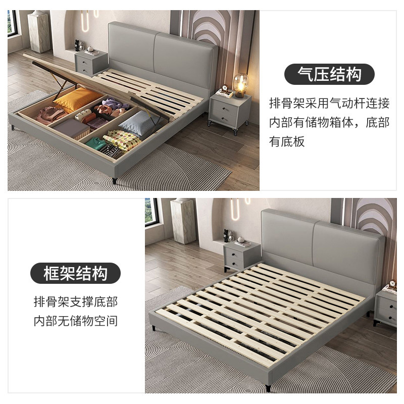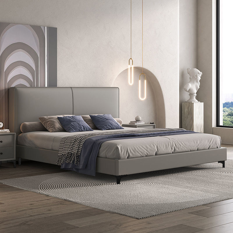 Modern minimalist light luxury solid wood leather bed Italian minimalist storage soft bed 1 8 meters master bedroom leather art double bed