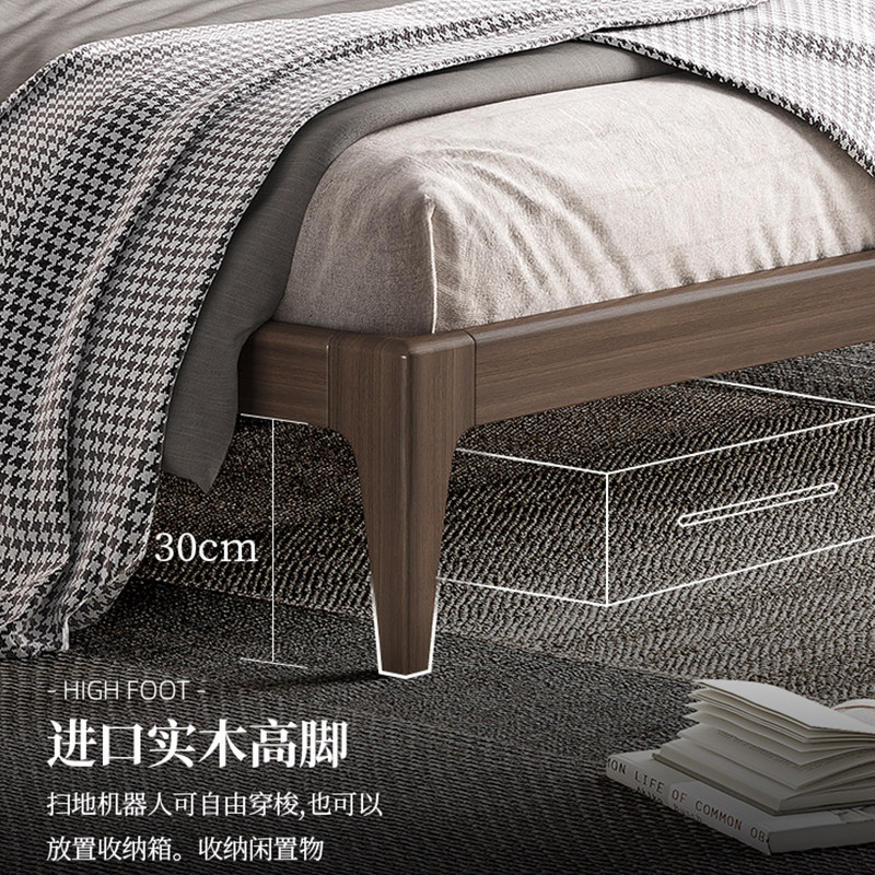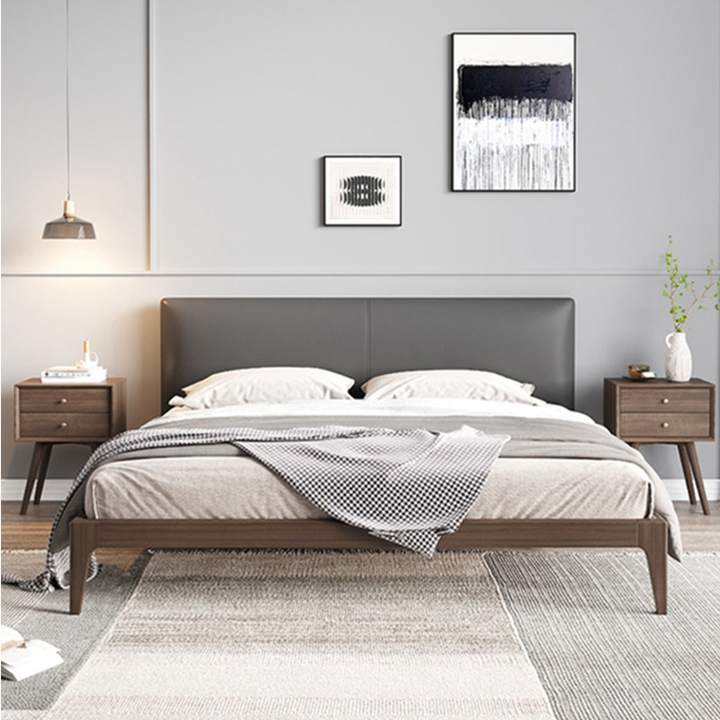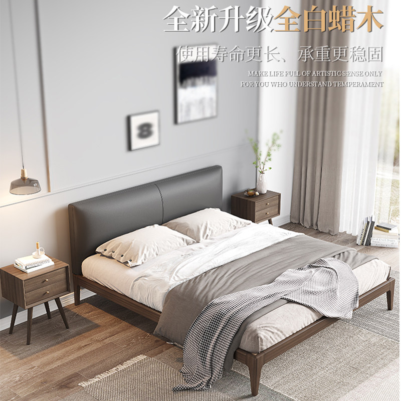 Nordic solid wood bed 1 8 meters small apartment double wedding bed bedroom minimalist leather modern minimalist side single bed