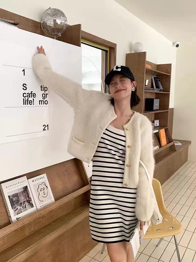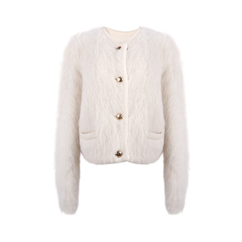 Deessesicile French celebrity style alpaca white plush high-quality sense of fragrance short coat women