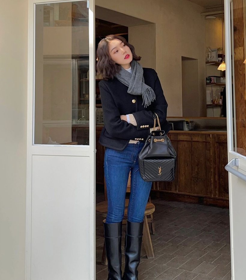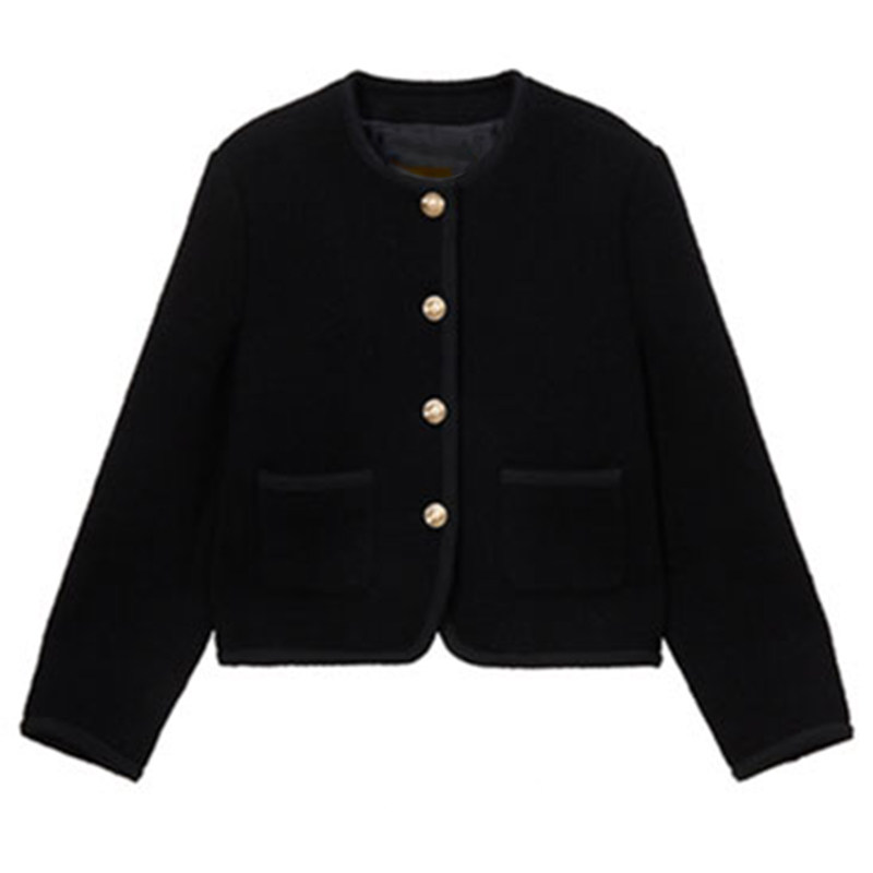 Black down small fragrant wind jacket women 2022 autumn and winter new Korean style wool non-pilling single-breasted jacket