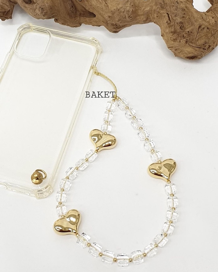 Korean Dongdaemun baket new mobile phone hanging chain cube sugar love design sense bright gold wrist chain lanyard
