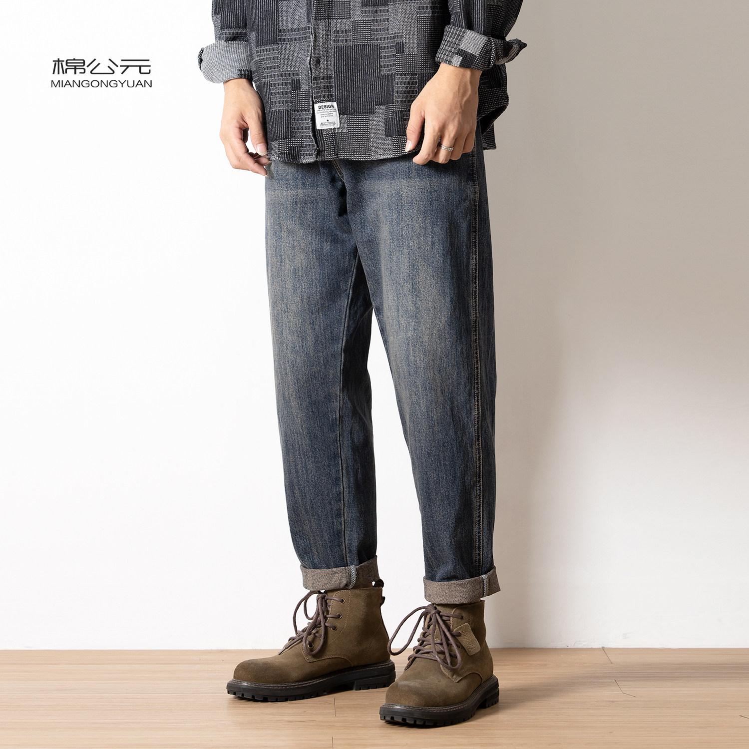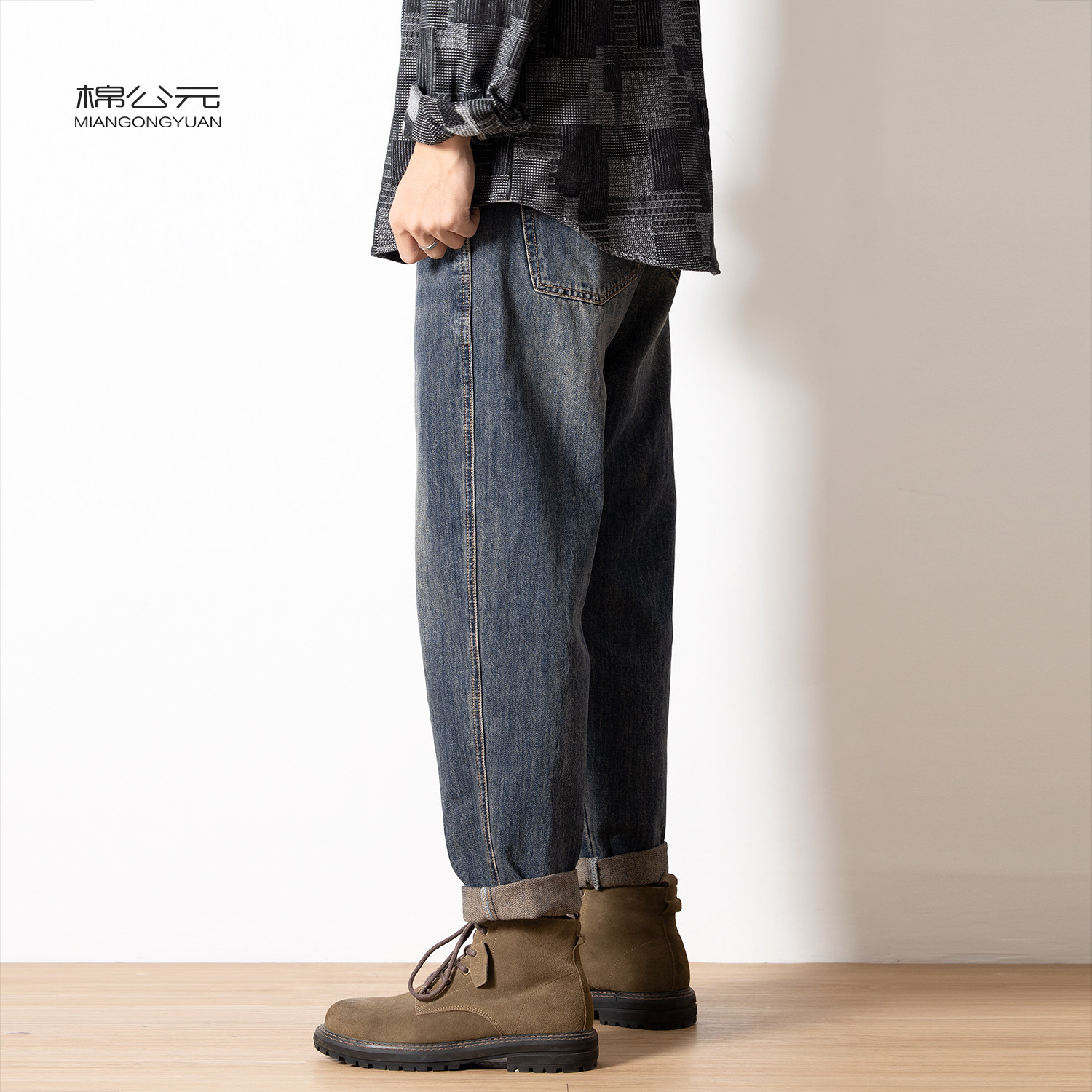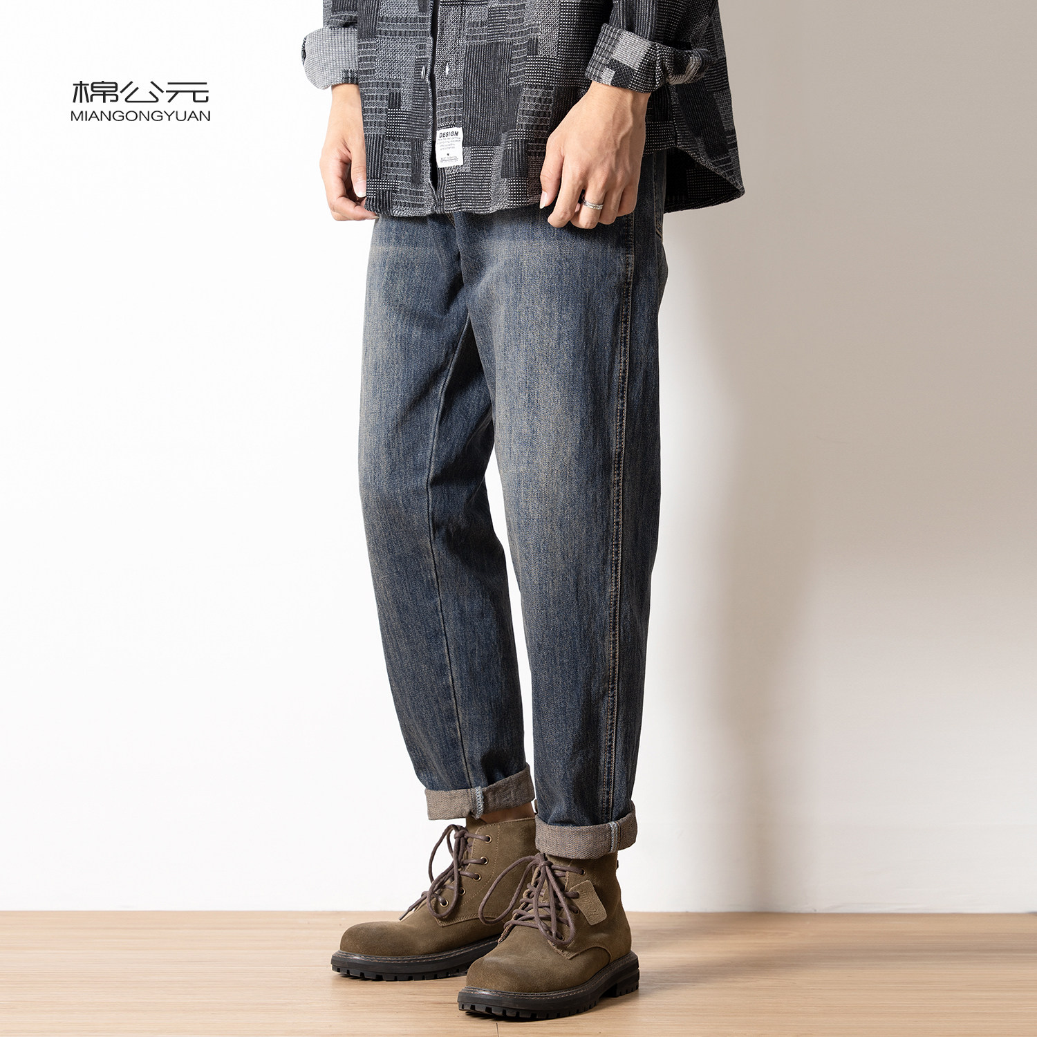 Cotton A.D. 2023 Autumn Winter Harun jeans Men's loose retro to make old Chauga tapered plus suede thickened trousers-Taobao