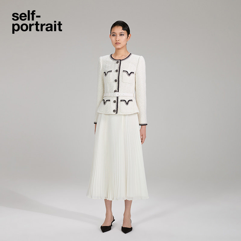 (China Capsule Series) self-portrait 2022 autumn and winter ivory white fake two-piece dress