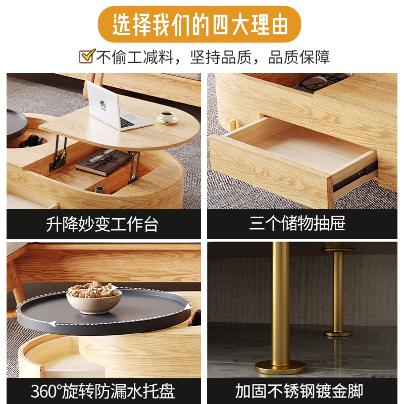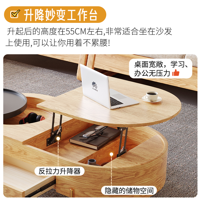 Modern simple log color small apartment light luxury retractable lifting solid wood living room tea table TV cabinet side cabinet combination