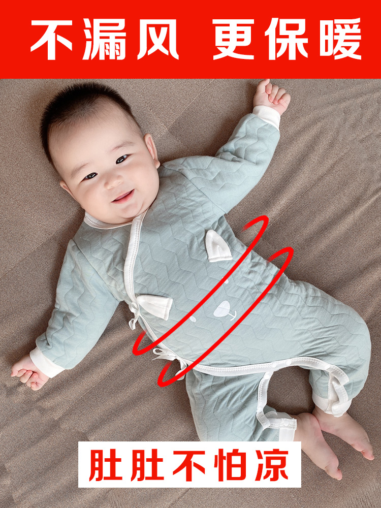 Newborn baby one-piece clothes autumn and winter pure cotton pajamas newborn men and women thicken warm romper baby clothes winter