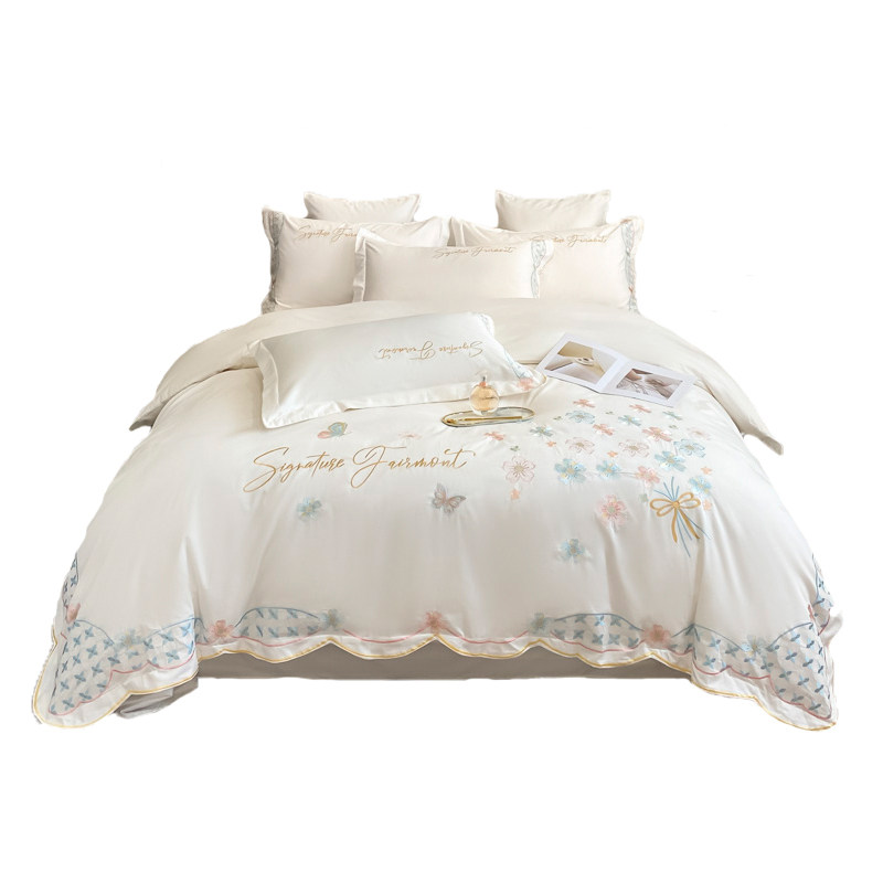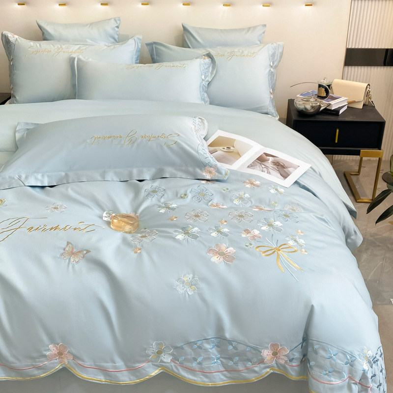 Italian luxury four-piece set of light luxury high-end butterfly embroidery quilt cover silky naked bedding sheets
