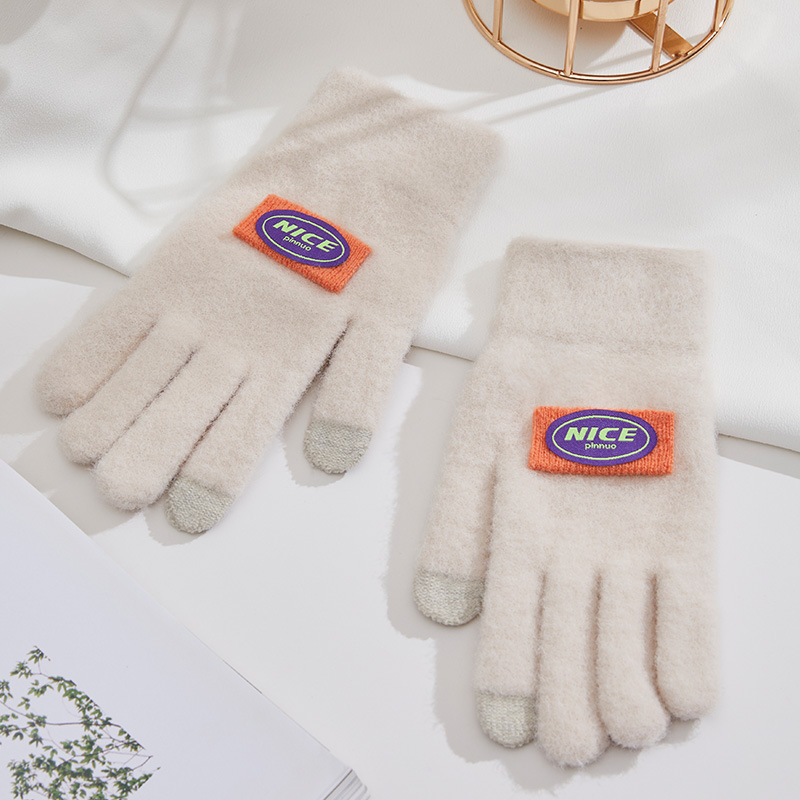 Gloves female autumn and winter Korean version all-match cycling autumn and winter warm knitting wool split finger touch screen gloves