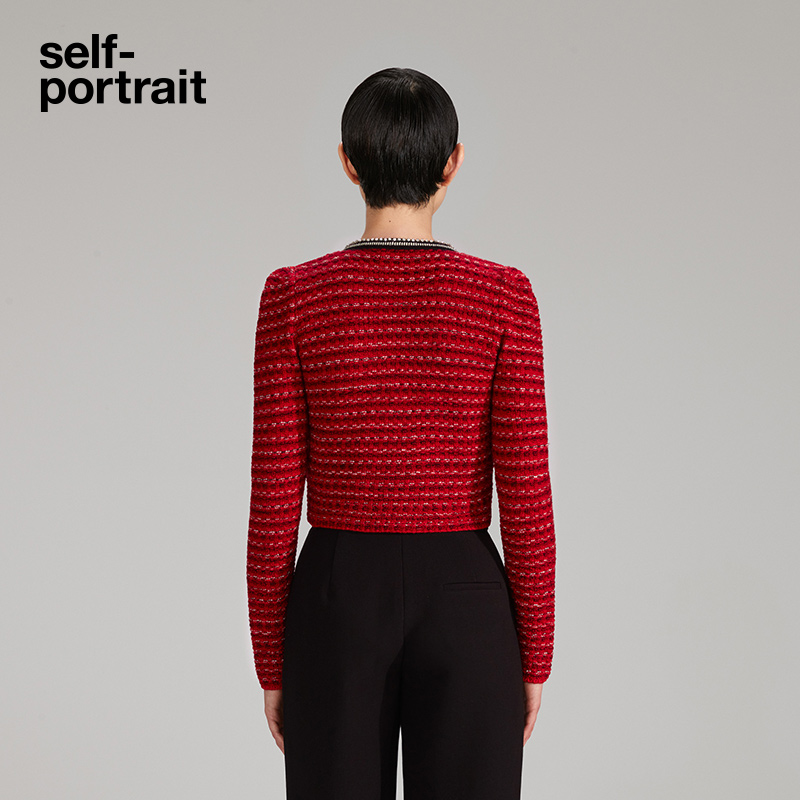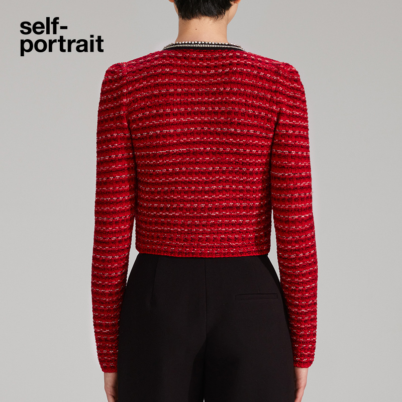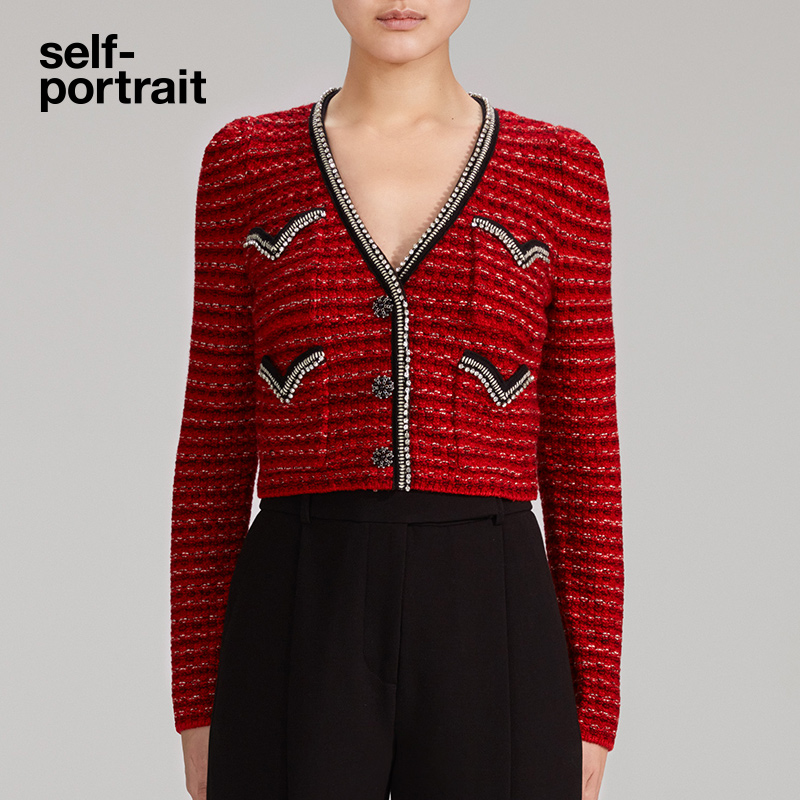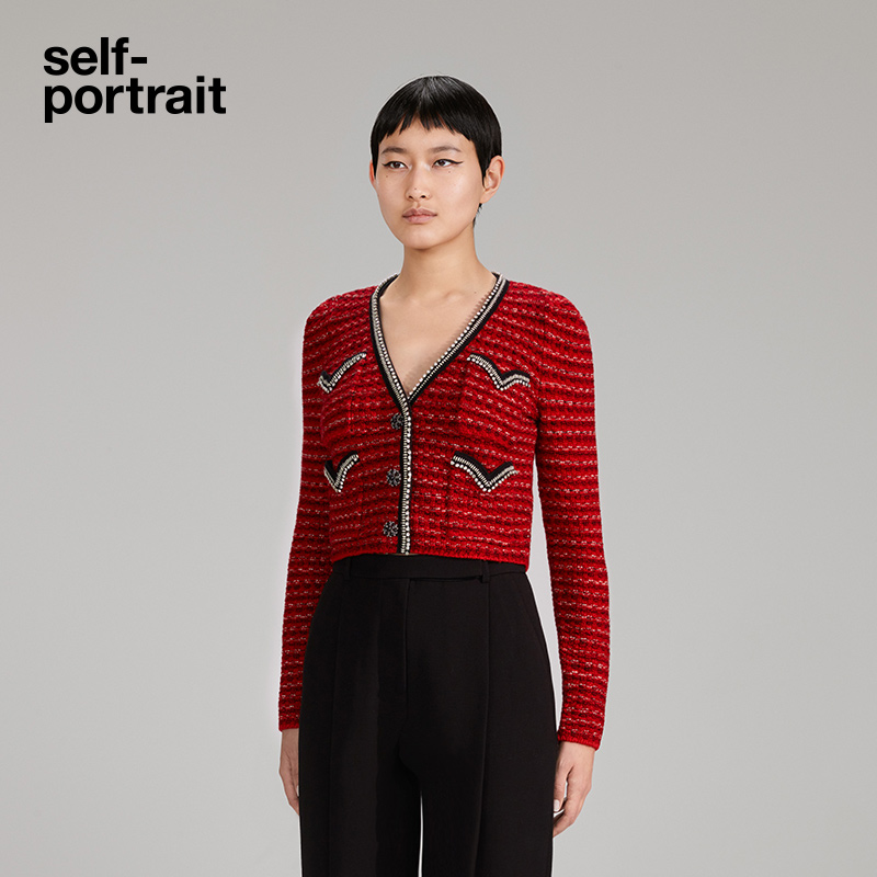 self-portrait 2022 autumn and winter red blend V-neck delicate knitted cardigan