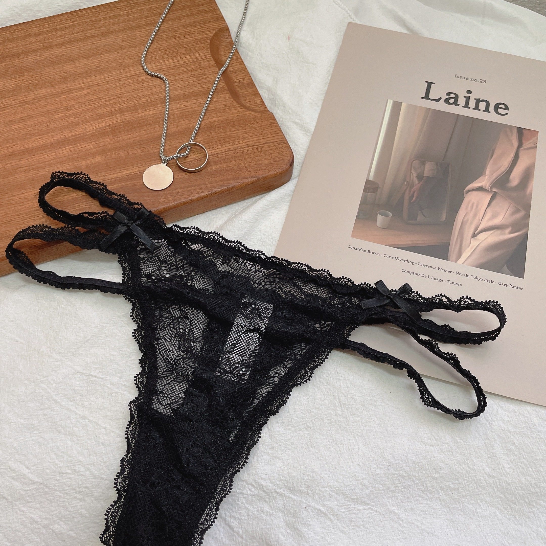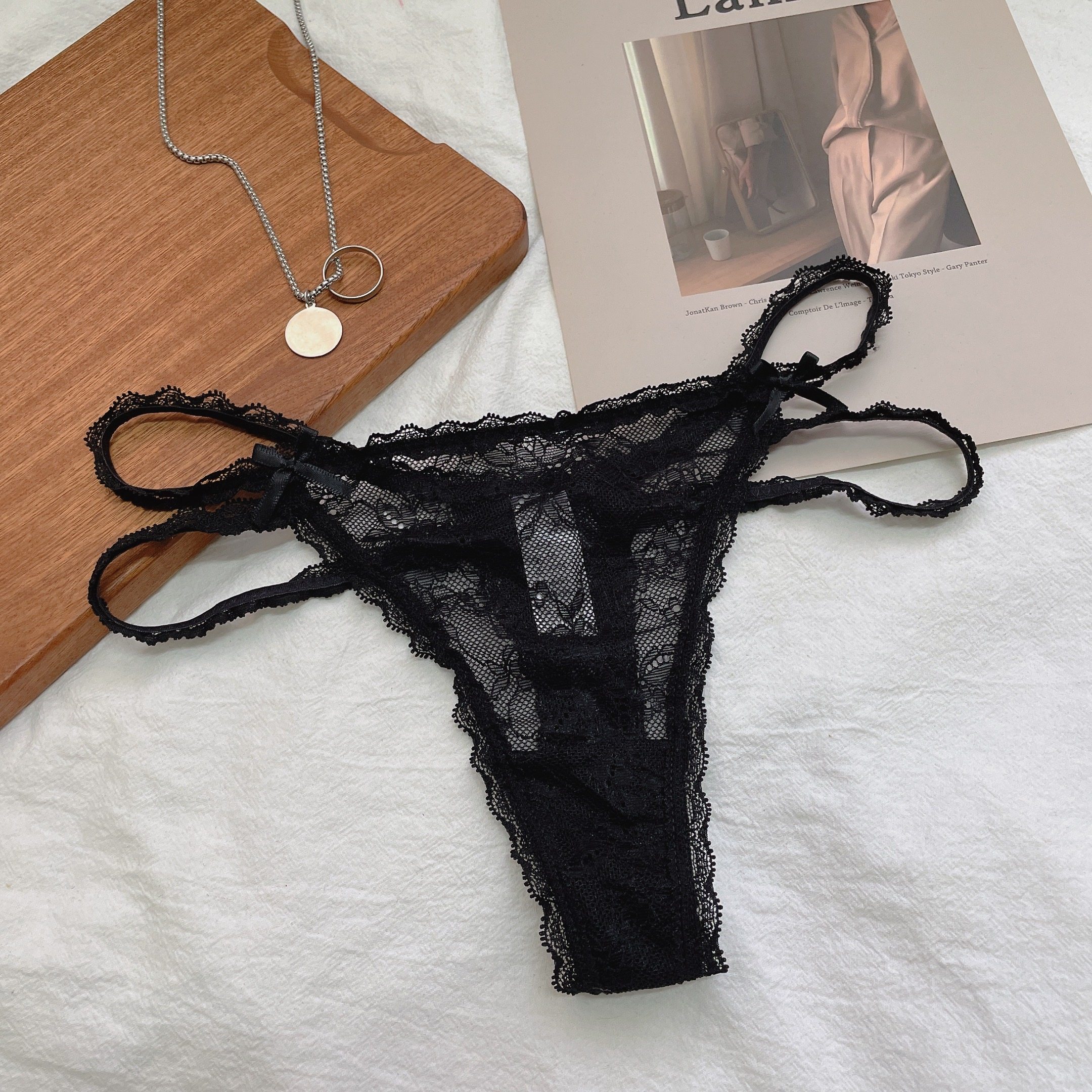 Thin band Tiny pants Girls Sexy No Marks Lace Sidepants Full Overdraft Black Teen Underpants Bowtie T-Tpants-Taobao