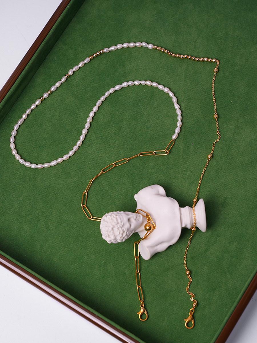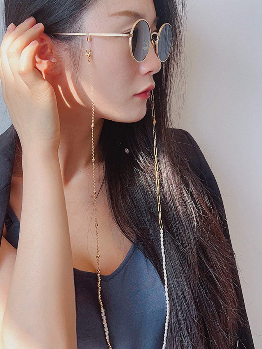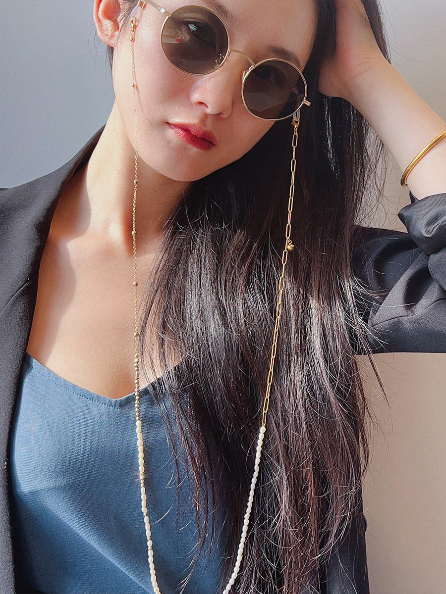 Natural ultra-fine rice pearl glasses chain women's hanging neck asymmetric simple splicing anti-lost anti-slip mask earphone chain