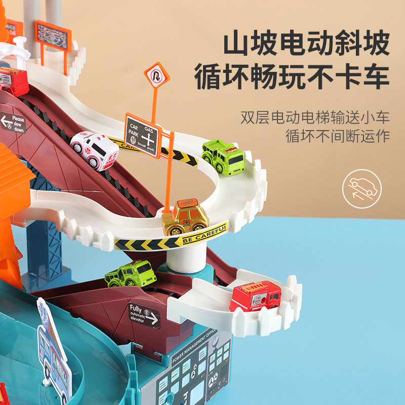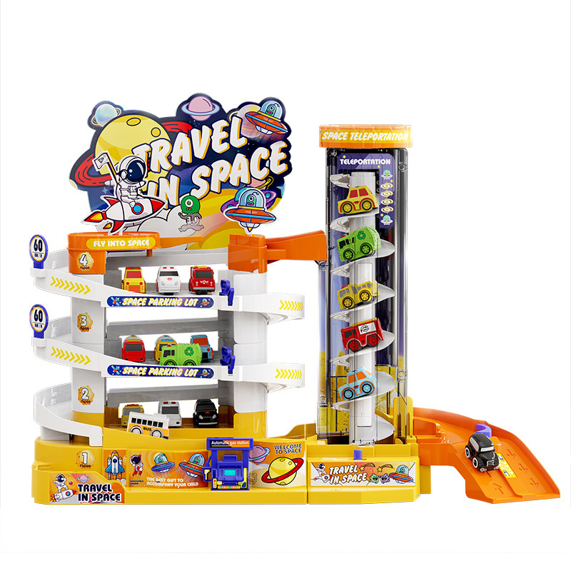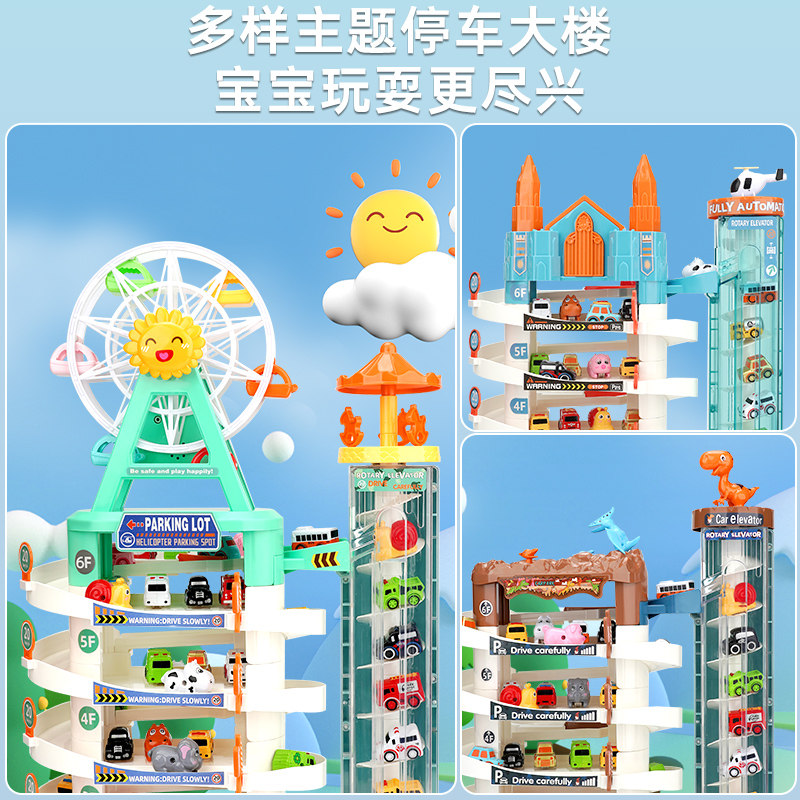 Four-story electric space parking building Four-story electric dinosaur parking building Four-story electric Ferris wheel building Electric high-speed ring road with random 4 taxiing cars