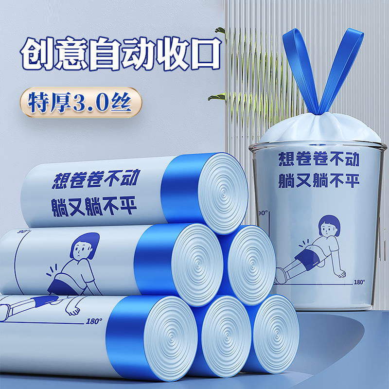Canon hand pumping rope type garbage bag home thickened portable kitchen steel bag large number printed pull-grade barrel plastic bag-Taobao