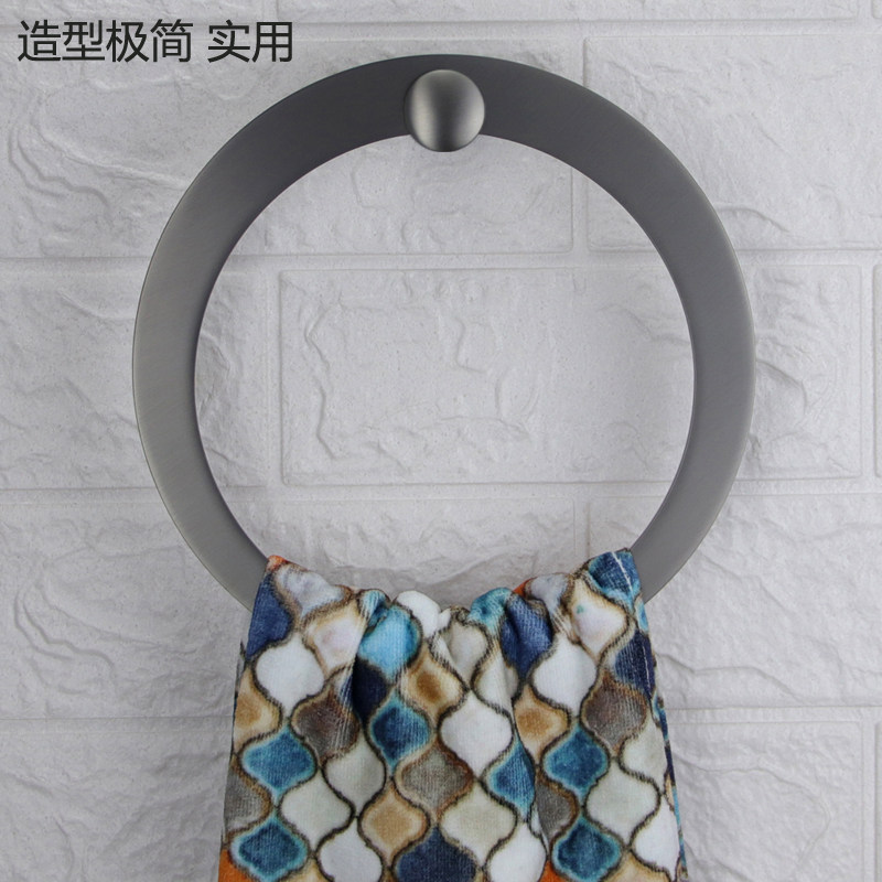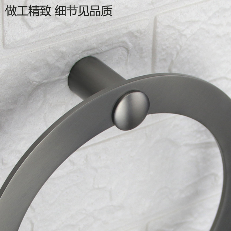 Gun Grey All-copper Towel Ring Wipe Hand Bath Towels Hanging Ring Stainless Steel Round Towel Rack Bathroom Hardware Hotel Engineering-Taobao