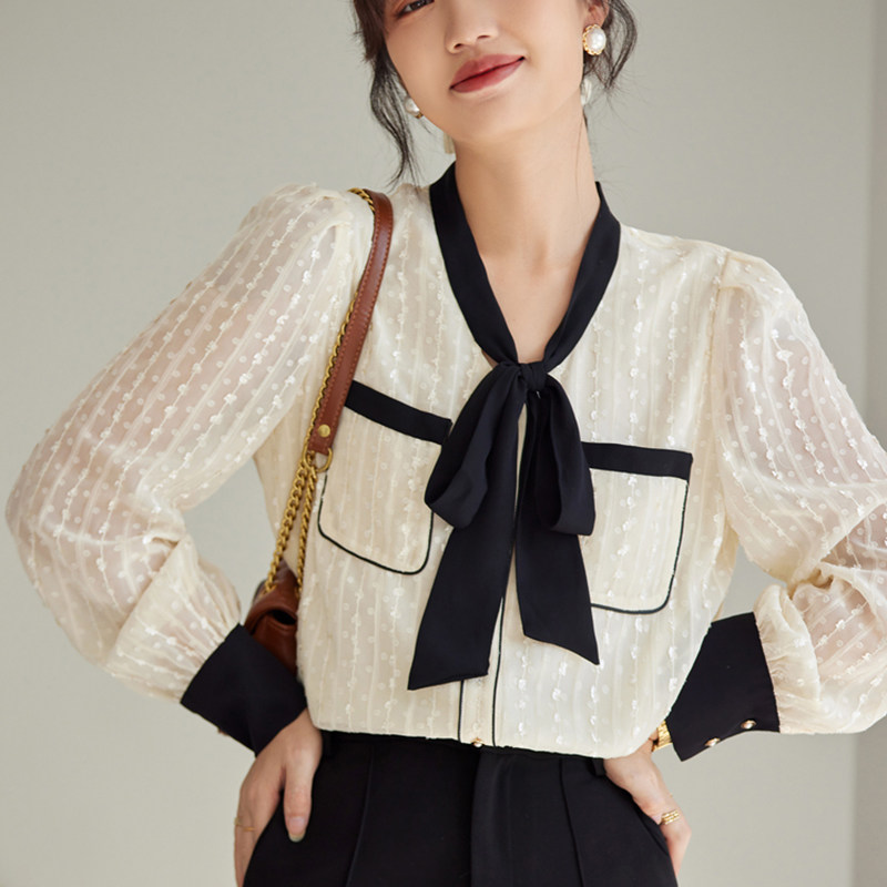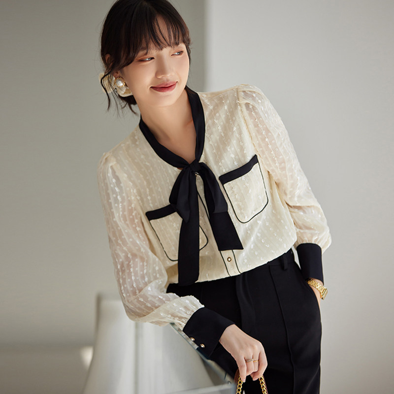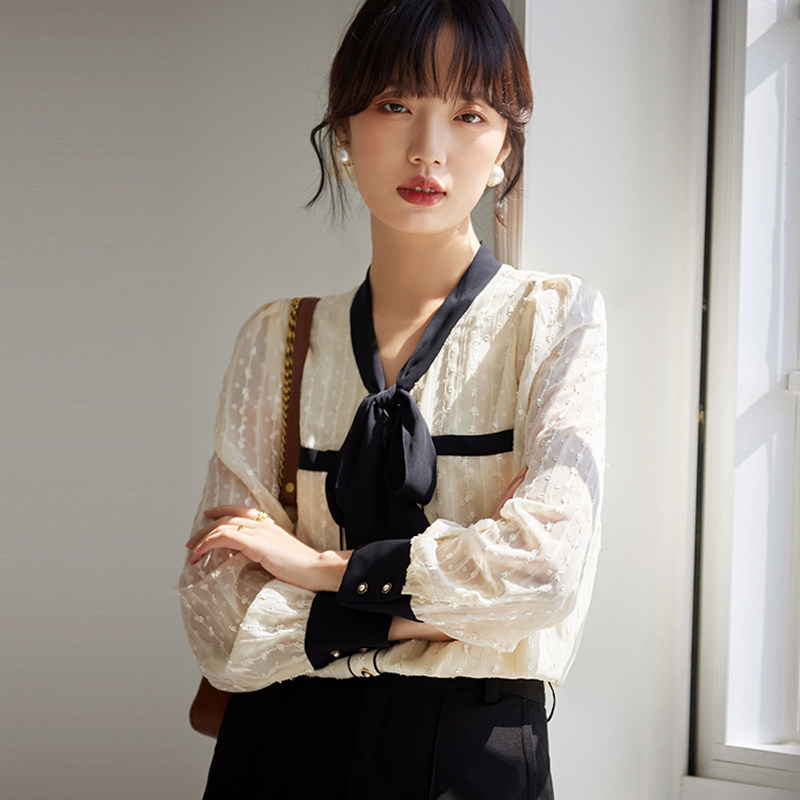 JOLIMENT beige lace shirt women's design sense niche 2022 spring and autumn new temperament all-match long-sleeved top