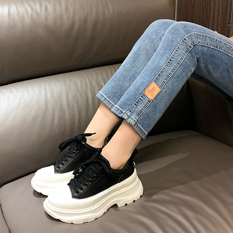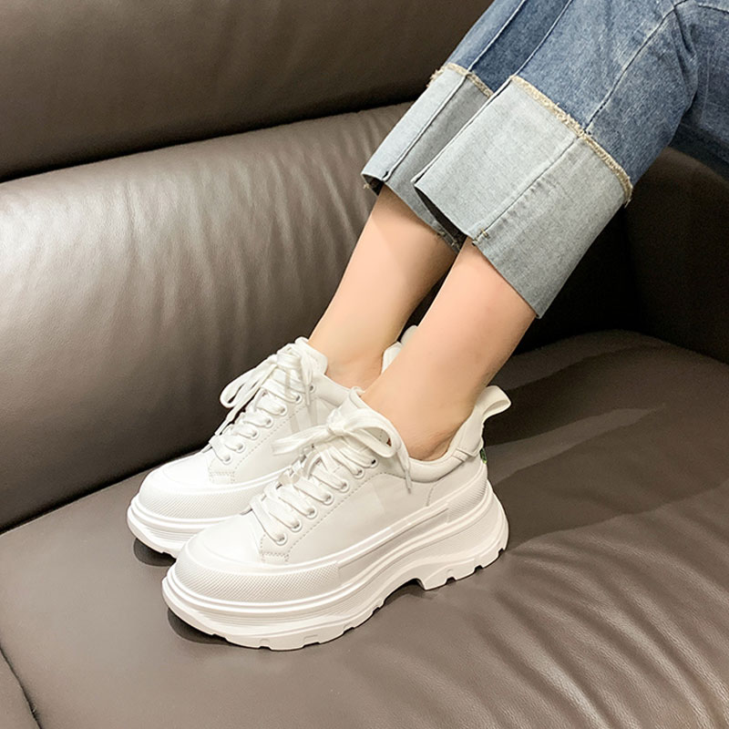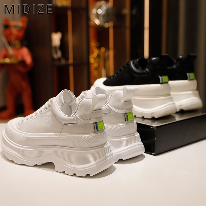 MIDIZE thick bottom white shoes leather shoes women's 2022 new heightened casual shoes all-match sports dad shoes