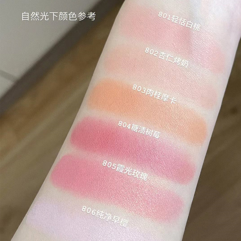 (801 light and white peach) first love white peach color (803 cinnamon moka) warm milk curry orange (802 almond grilled milk) cream nude apricot (804 sugar stains raspberry) clear through plum color (805