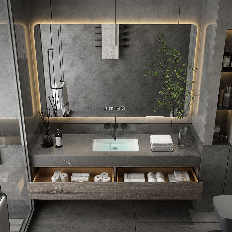 Modern minimalist rock board bath cabinet integrated basin ceramic washstand toilet washroom washbasin Washbasin Cabinet Composition Cabinet-Taobao