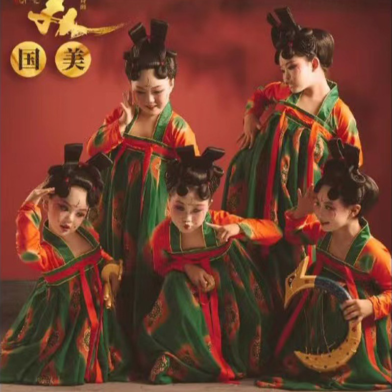 Girls' Hanfu Tang Palace Banquet Children's Performance Costumes Antique Ruskirt Tang Suit Dress Dunhuang Classical Dance Costumes
