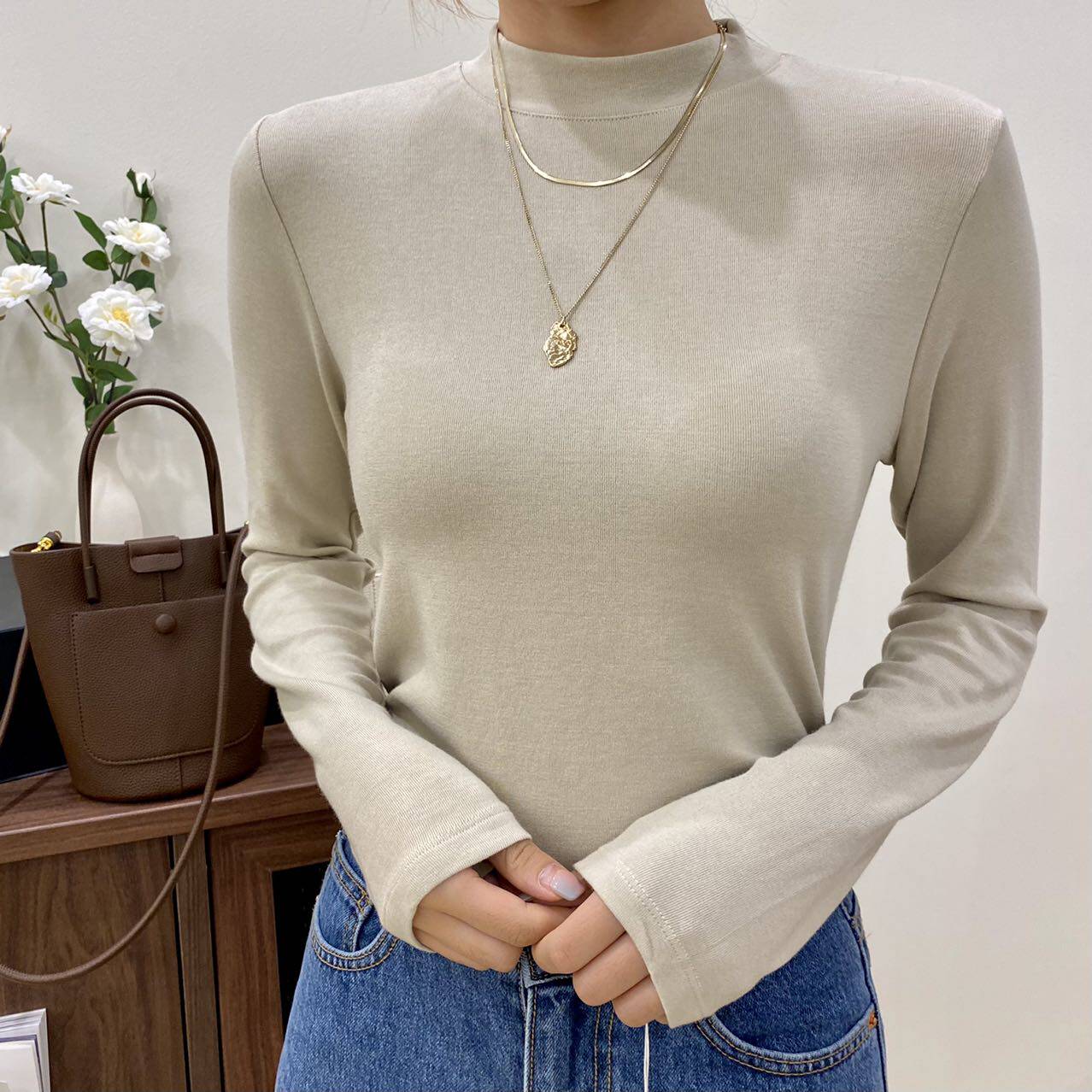 Miss Sunflower 2022 autumn and winter new South Korea Dongdao Middle and low - collar slim blouse 091204