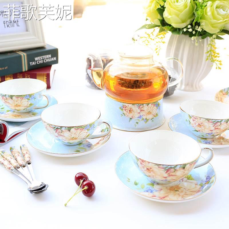 flower teapot set fruit teapot home European afternoon tea tea set heat-resistant glass flower teapot candle