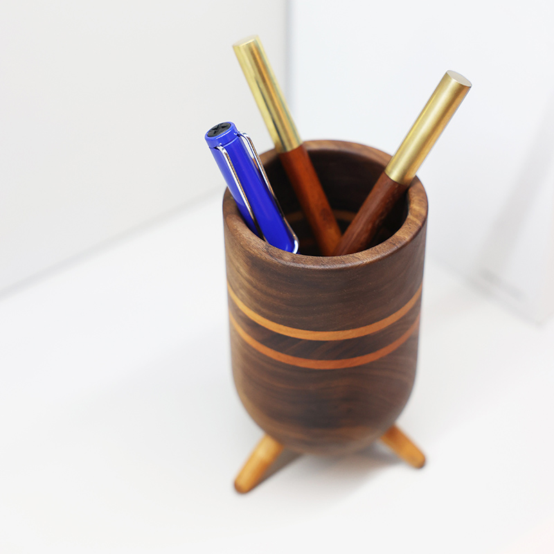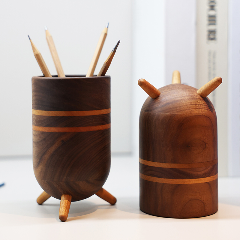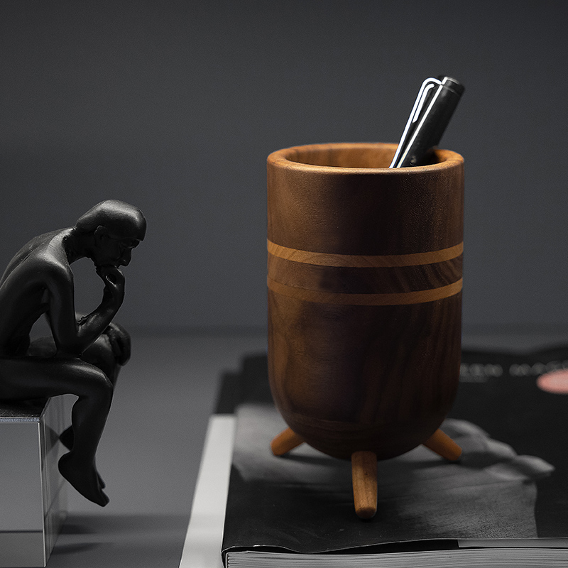 Black Walnuts Solid Wood Pen Holder Creative Office Book Room Desktop Pendulum stationery containing box light and luxurious pen holder-Taobao