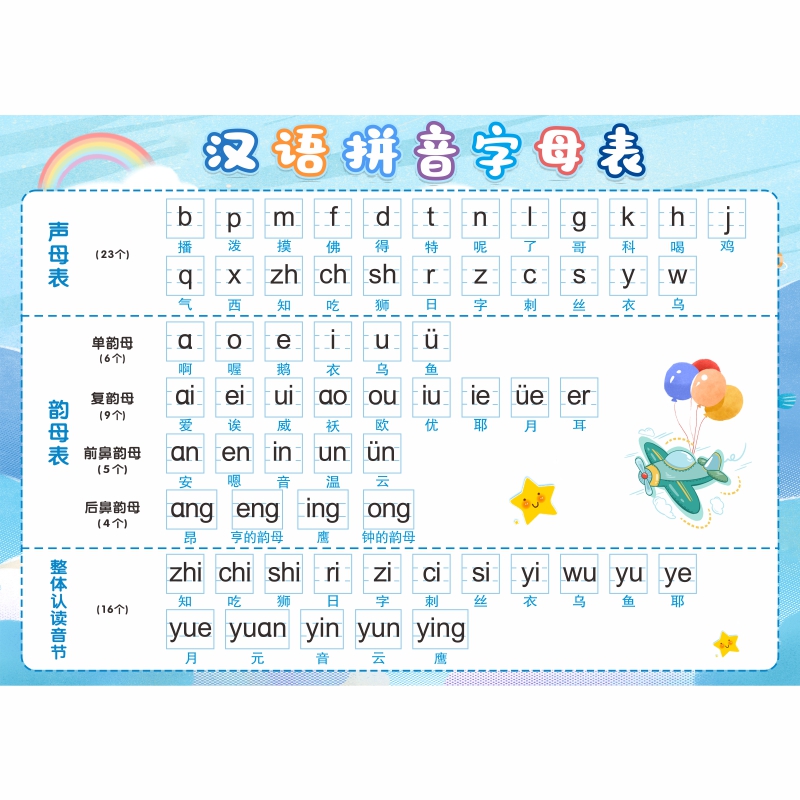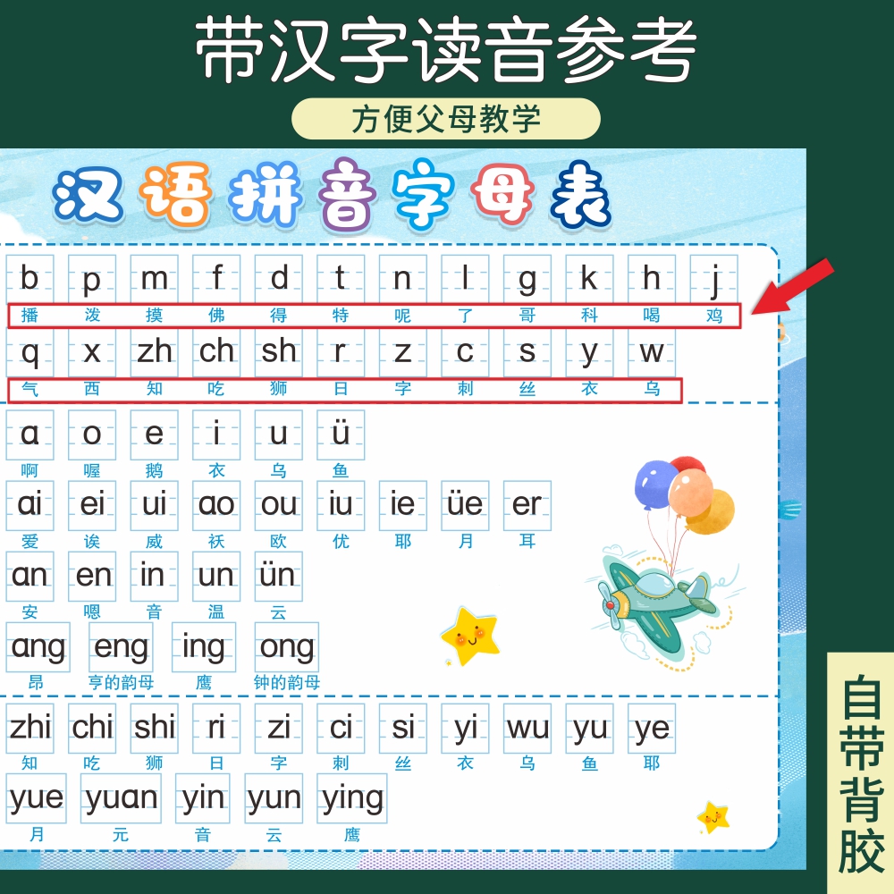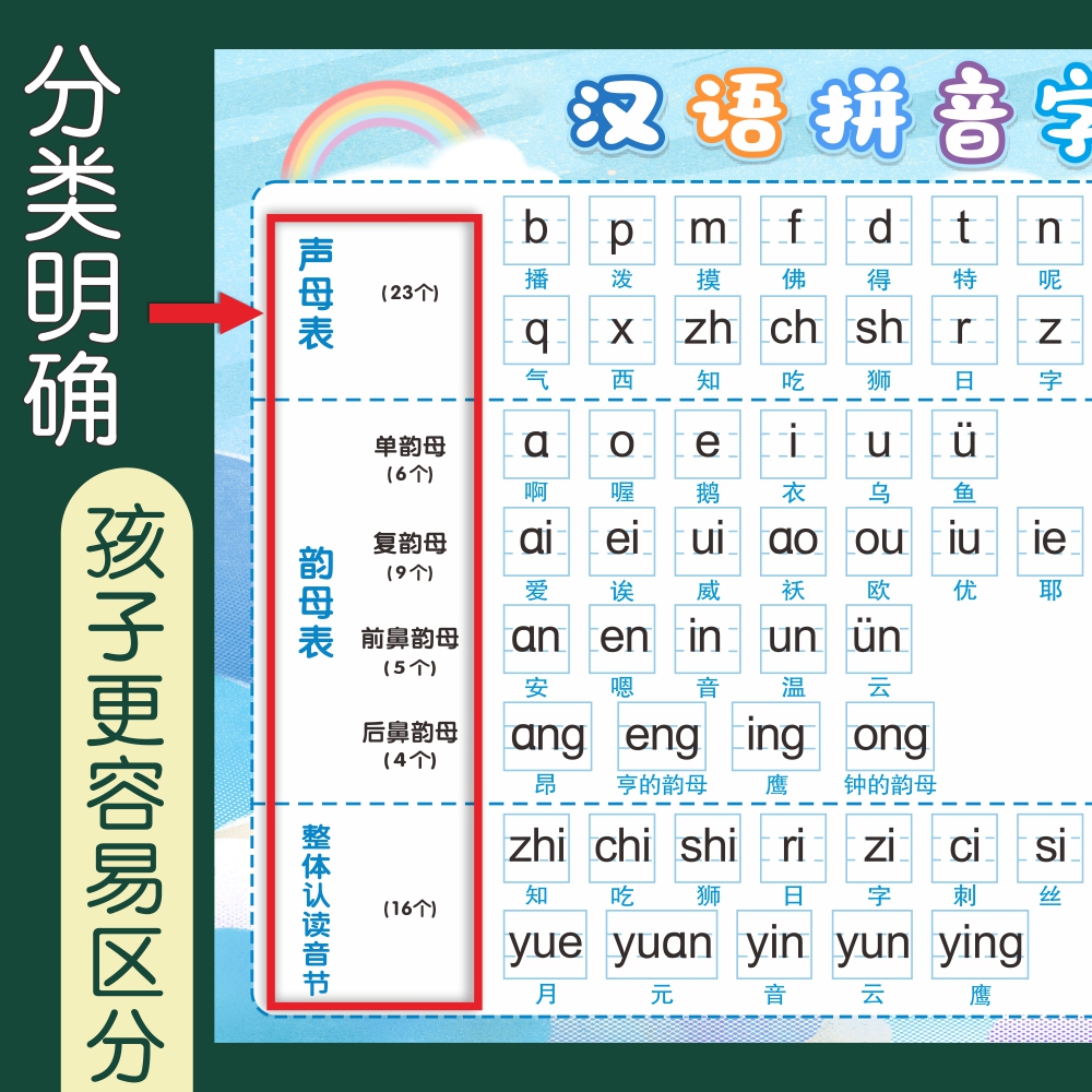 26 hanyin pinyin alphabet wall stickles first grade sound mother rhyme overall admit reading syllables parquet read full-table wall chart-Taobao