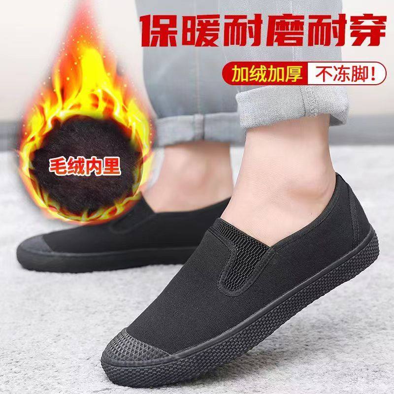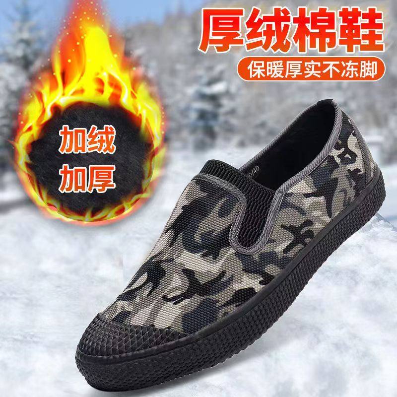 Shandong Lutai winter new plus velvet camouflage black round toe two cotton men's and women's non-slip warm Chinese style slip-on shoes